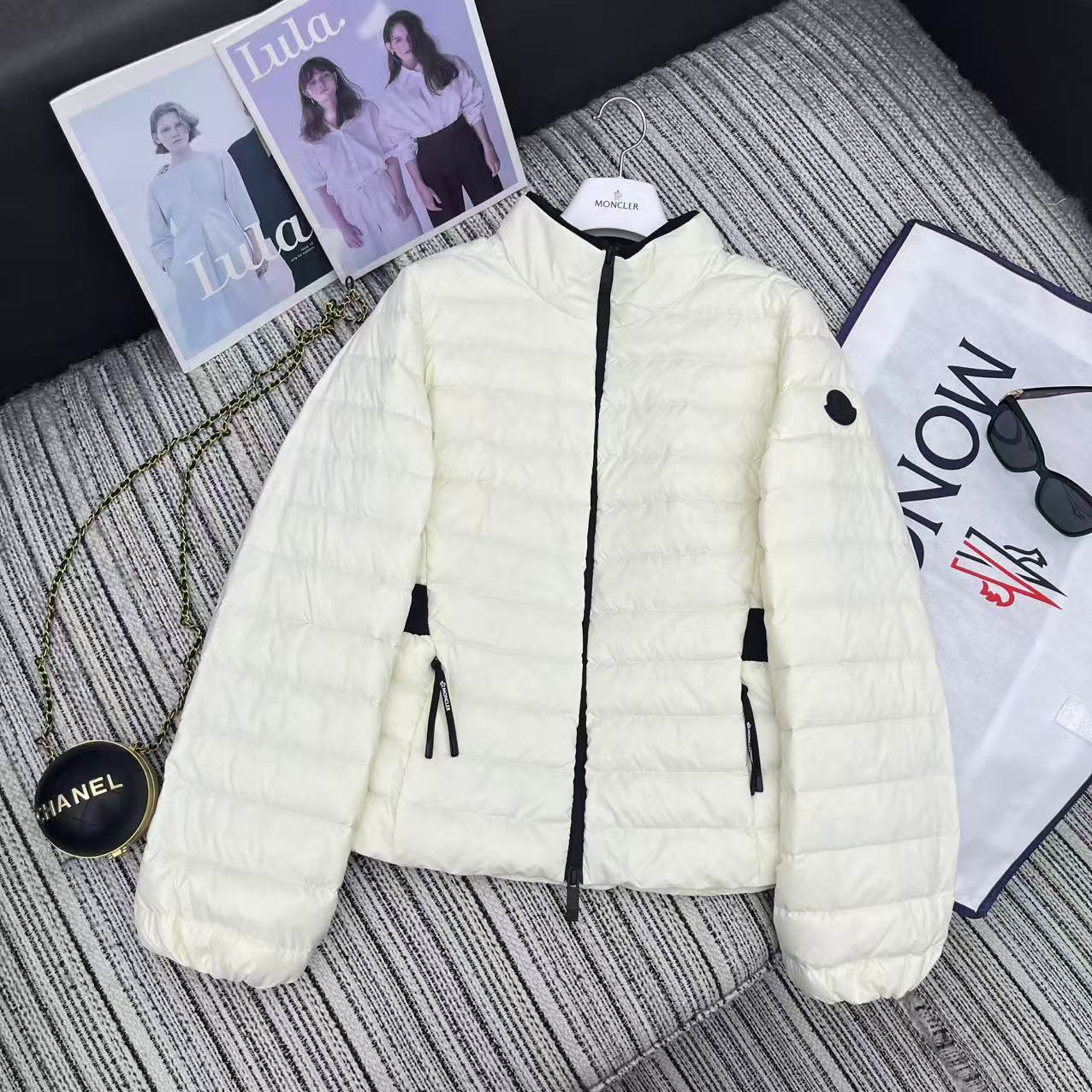 モンクロ 2025-2026冬のブラックラベルシリーズ|バーレリー ダブルライズ立ち襟コントラストカラー収腰デザイン ダウンジャケット(ブラック/ホワイト)