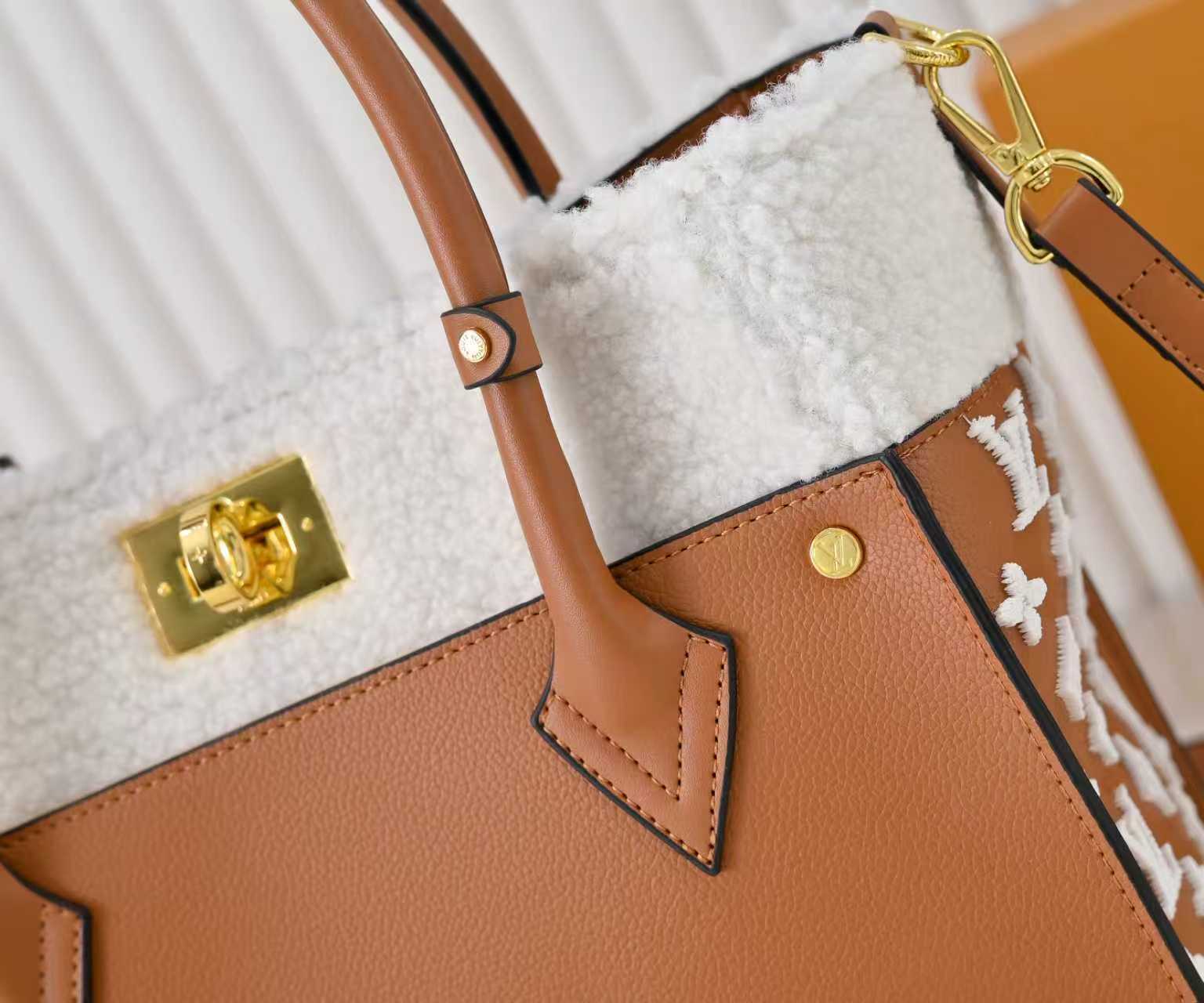 LVの人気シリーズ「オン・マイ・サイド」から登場したミディアムサイズのハンドバッグ。上質な「グラビアカーフスキン(粒面牛皮革)」と柔らかな「ウールレザー」を融合し、「快適な持ち心地」と「クラシックな格調」を両立。「両側に施されたモノグラムフラワーのタッフィング(簇绒)」がアクセントとなり、トップハンドルと取り外し可能なショルダーストラップで「手提ち・肩掛け・斜め掛け」の多様な背携方式を実現。「日常使いから特別な日まで、持つたびに快適さと上品さを実感する、身につける悦びを追求した逸品」として開発されました。