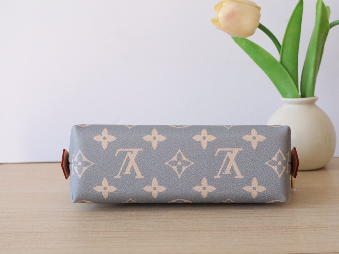 本アイテムは、ルイ・ヴィトンの定番人気シリーズ「ポシェット・コスメティーク」のスモールサイズ化粧ポーチです。旅先での身軽さとエレガントなスタイルを両立させる、実用性と美意識を融合した逸品です。