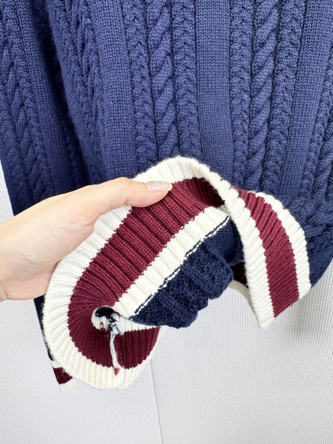 ・ウエストの引き締め:ややゆとりのある身頃が胴回りをカバーしつつ、リブ編みの縁取りがウエストラインを柔らかく強調。「沙漏型ボディ」を自然に演出
