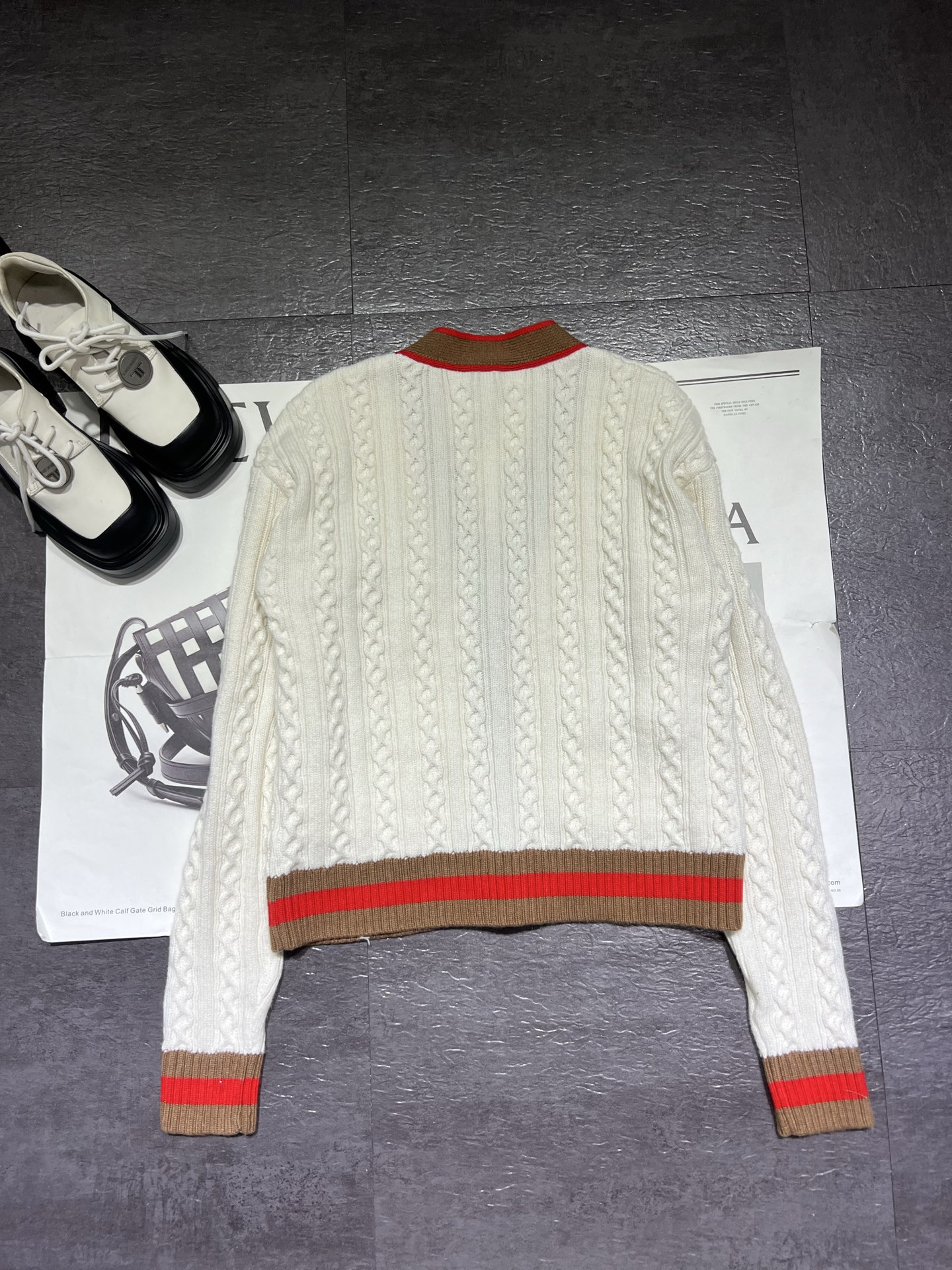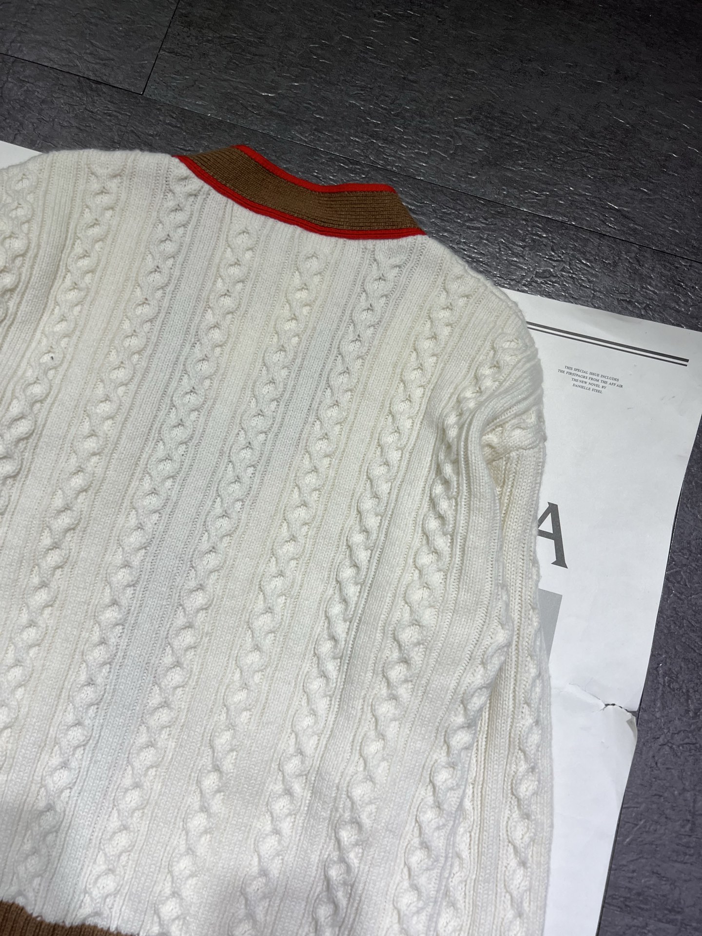・特注ボタンデザイン:ブランドロゴをあしらった「オーダーメイド金属製ボタン」(ゴールドトーンコーティング)が、カーディガンの正面を飾る。ボタンの重量感と光沢が「上品なアクセント」となり、プラスチックボタンとは一線を画す高級感