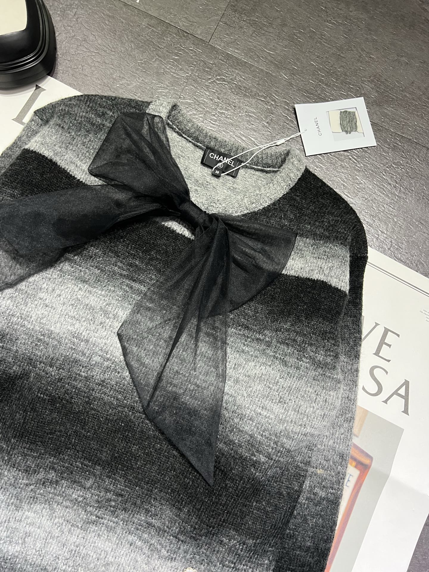 シャネル 25K 爆発的人気モデル!グレーグラデーションメッシュニットセーター