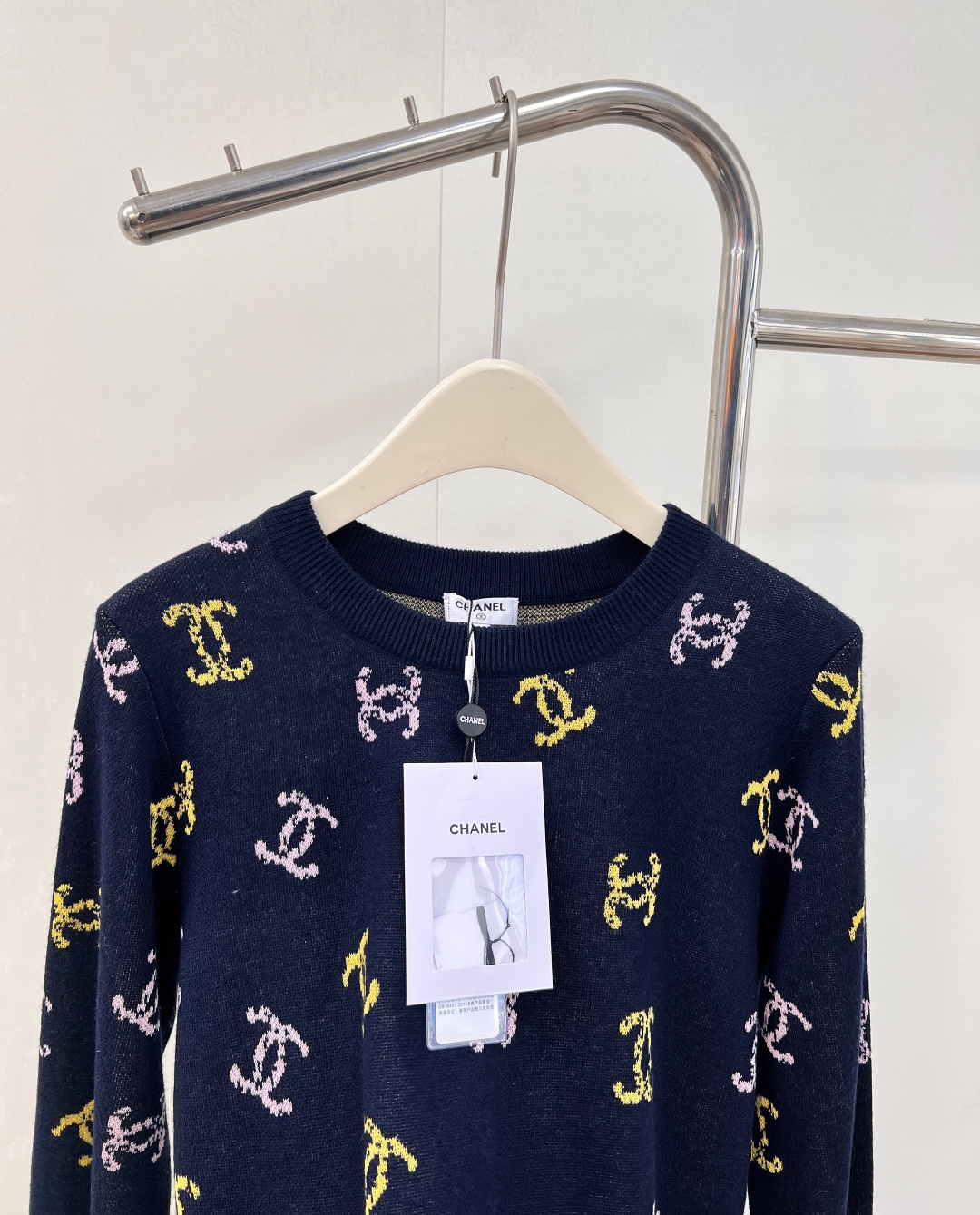 シャネル(CHANEL) 全身ロゴプリント×コントラストカラー プルオーバーニット|ラフで可愛い「人間シャネル」スタイル