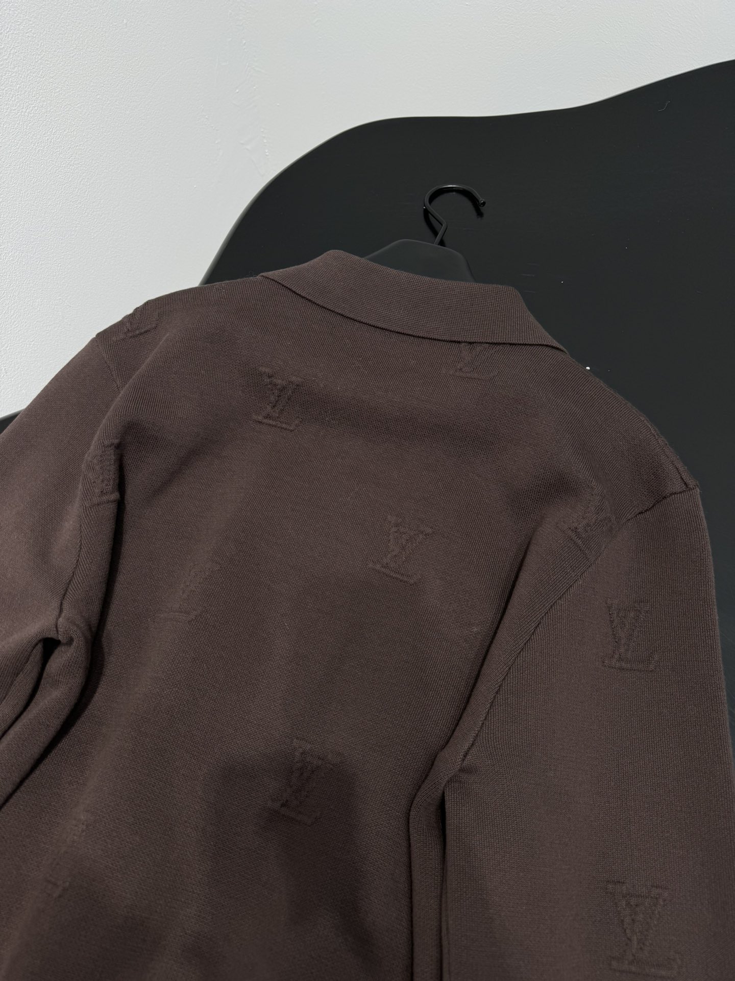 ・全幅プリントの圧巻:ブランドのアーカイブからインスピレーションを得た「Blason Macro」パターンを、ジャカード編み技術で「全幅立体表現」。縦横に交錯する幾何学模様が、光の角度で「陰影のグラデーション」を生み、近くで見れば繊細な編み目の凹凸が「手作業の温もり」を感じさせる