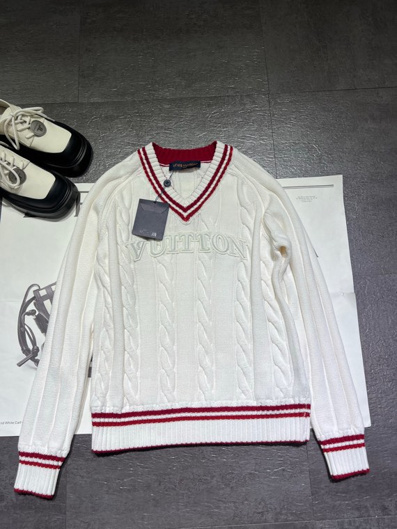 【ルイ・ヴィトン】2026年モデル 男女兼用 Vネック学園風ストライプニット長袖プルオーバー