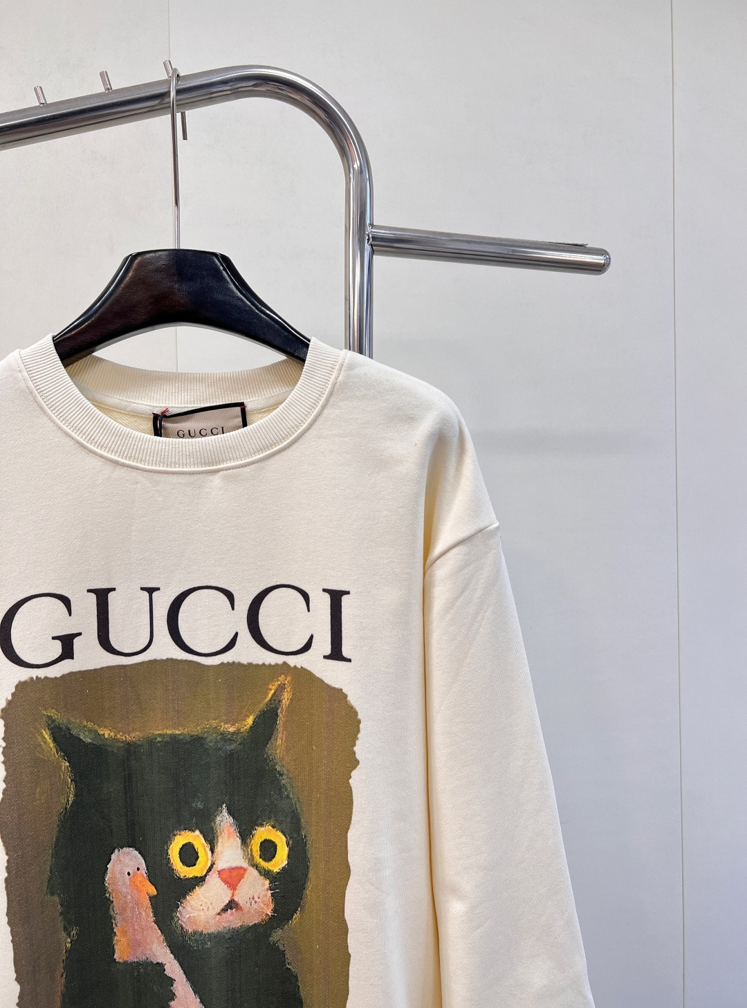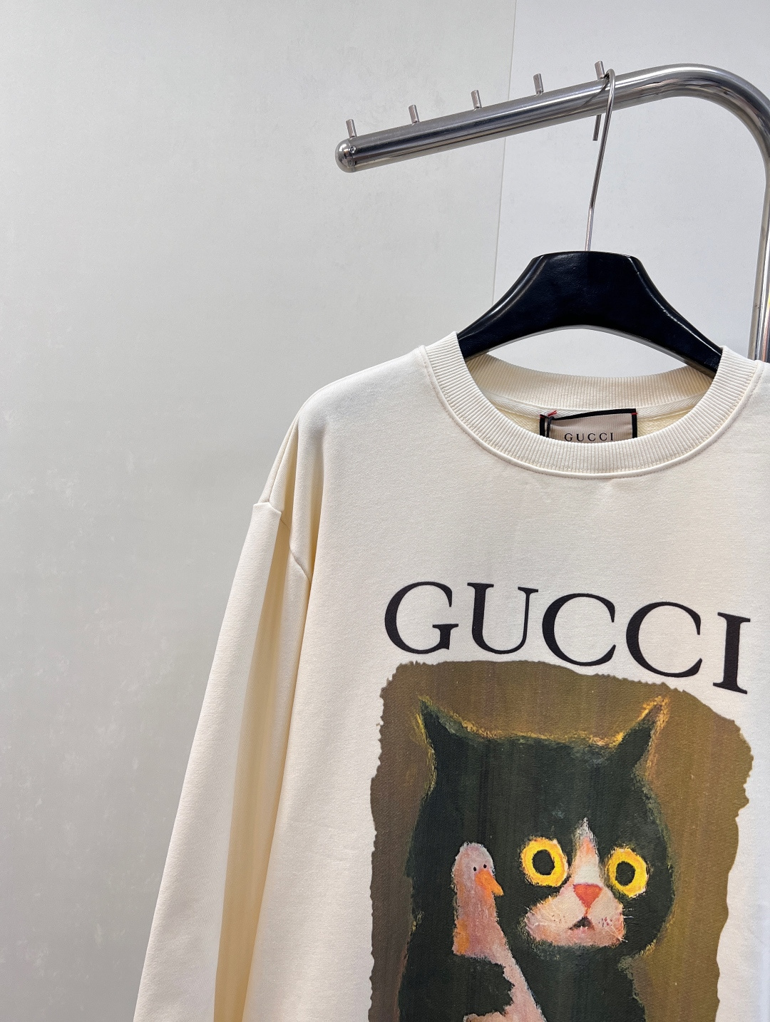 【GUCCI】早秋新作 油絵風猫プリントクルーネックスウェットシャツ|減齢アカデミー必須アイテム