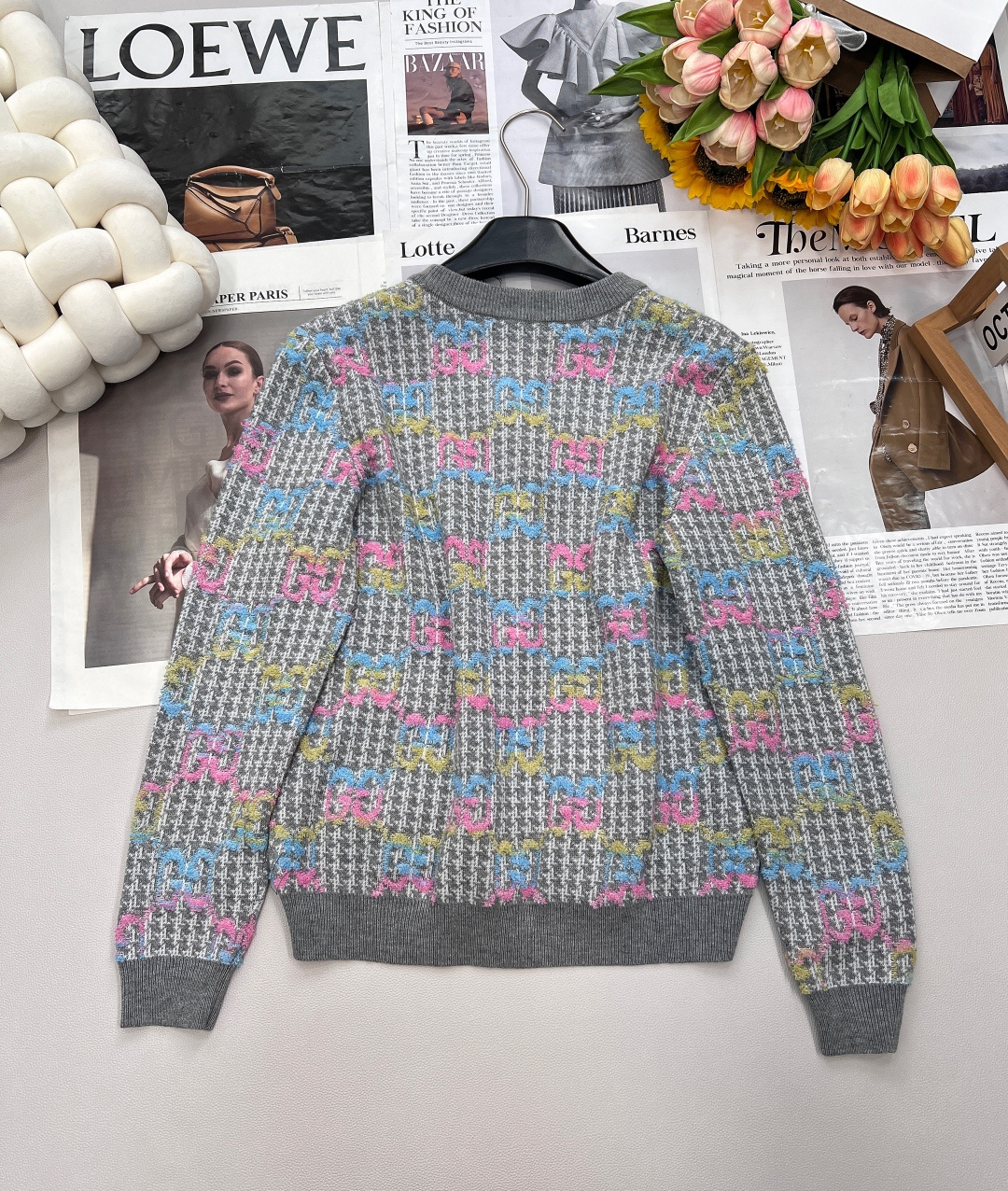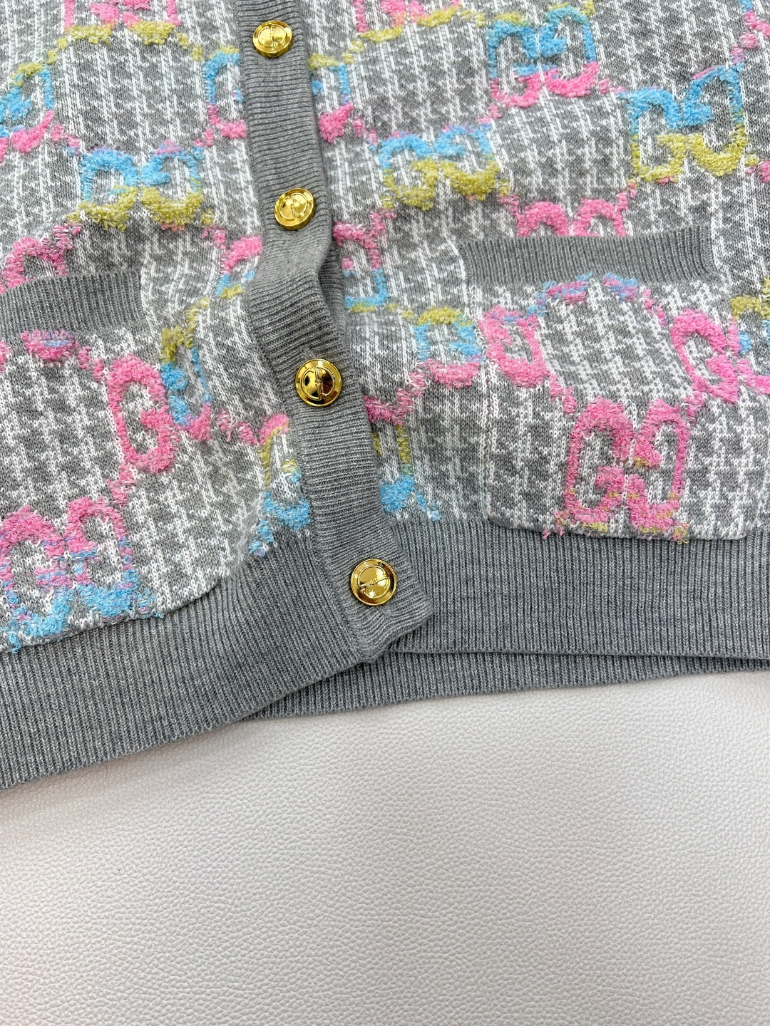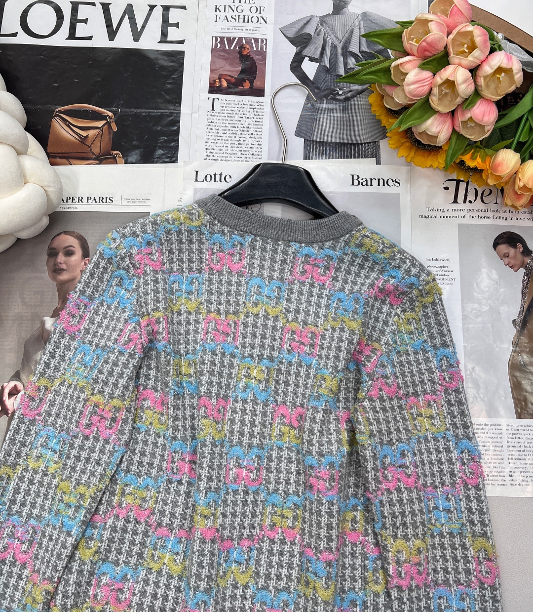 【GUCCI】2025春夏新作 カラフルジャカードニットウールVネックカーディガン|クラシックGG柄の至高の職人技
