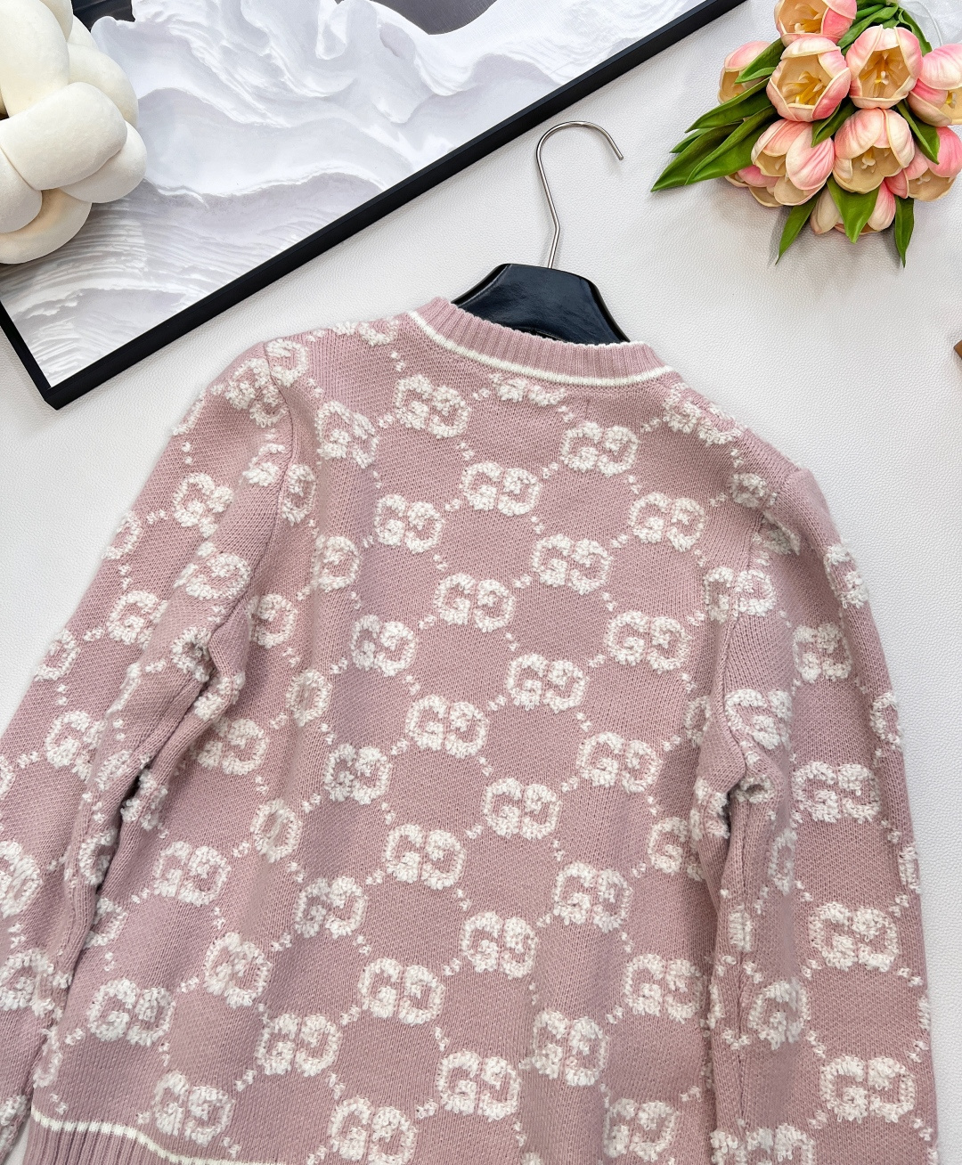 「GGジャカード柄が繊細で、触ると高級感が伝わってきます。Mサイズを着用したところ、Vネックが首元をスッキリ見せてくれて、同僚から『今日のカーディガン、センス良い!』と褒められました♪ ウール素材が暖かくて、秋から冬にかけて活躍しそうです!」