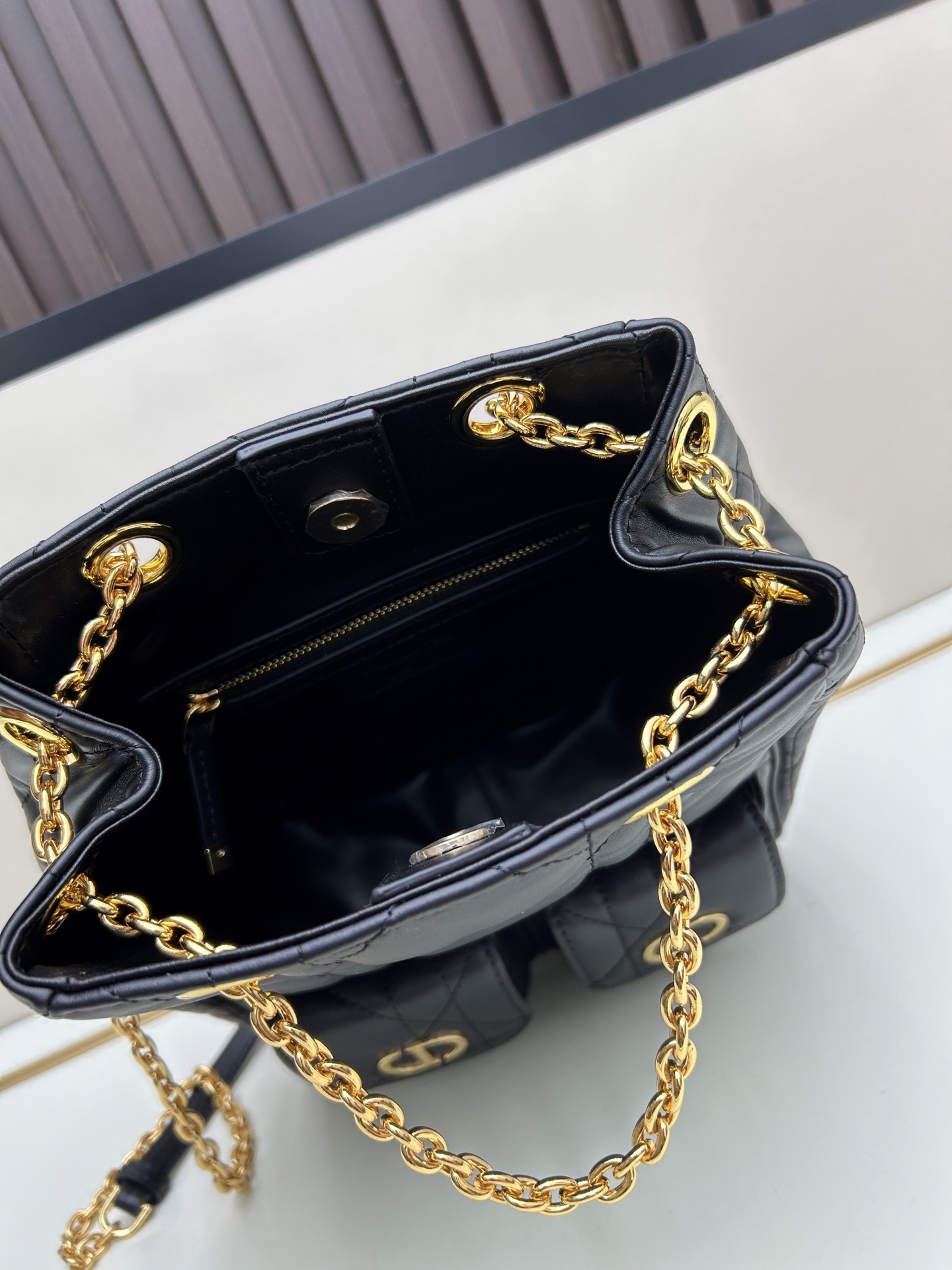 【DIOR(ディオール)Caro Multicarry シリーズ ダブルチェーンバケツバッグ】 —— 輸入ラムレザーとダブルチェーンが織りなす「休暇を彩る実用美バケツバッグ」——