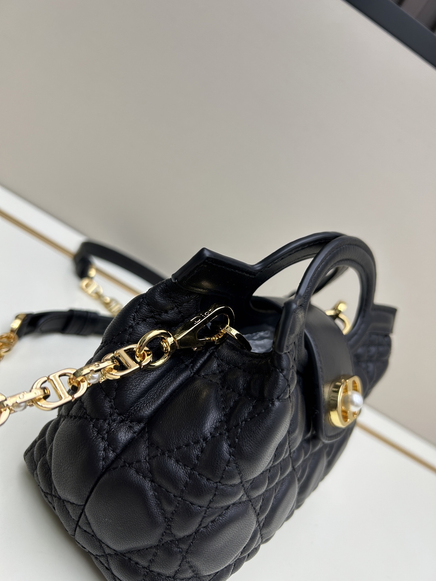 Jolieシリーズは、「小さなバッグにこそ、持ち主のセンスと生活の豊かさを詰め込む」をコンセプトに生まれました。このトップハンドルミニバッグも例外ではなく、コンパクトなサイズの実用性、トップハンドルが生む儀式感、チェーンの繊細な光沢、そして秋冬の装いに溶け込むデザインが融合。「大げさな装飾より、小さなディテールで品格を示す」というディオールの美学を体現しています。