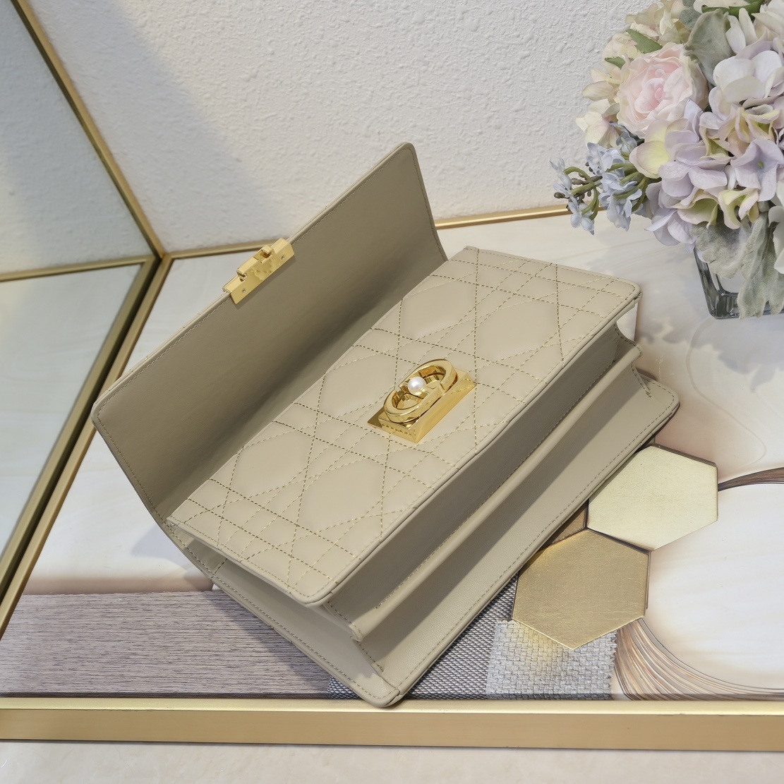 【DIOR(ディオール)アンジュ ハンドバッグ アイボリーカーフレザー 特大カンバセラージュ モデル4411】 —— エレガントな美学が紡ぐ「ディオール新シリーズの幕開けを告げるアイコン」——