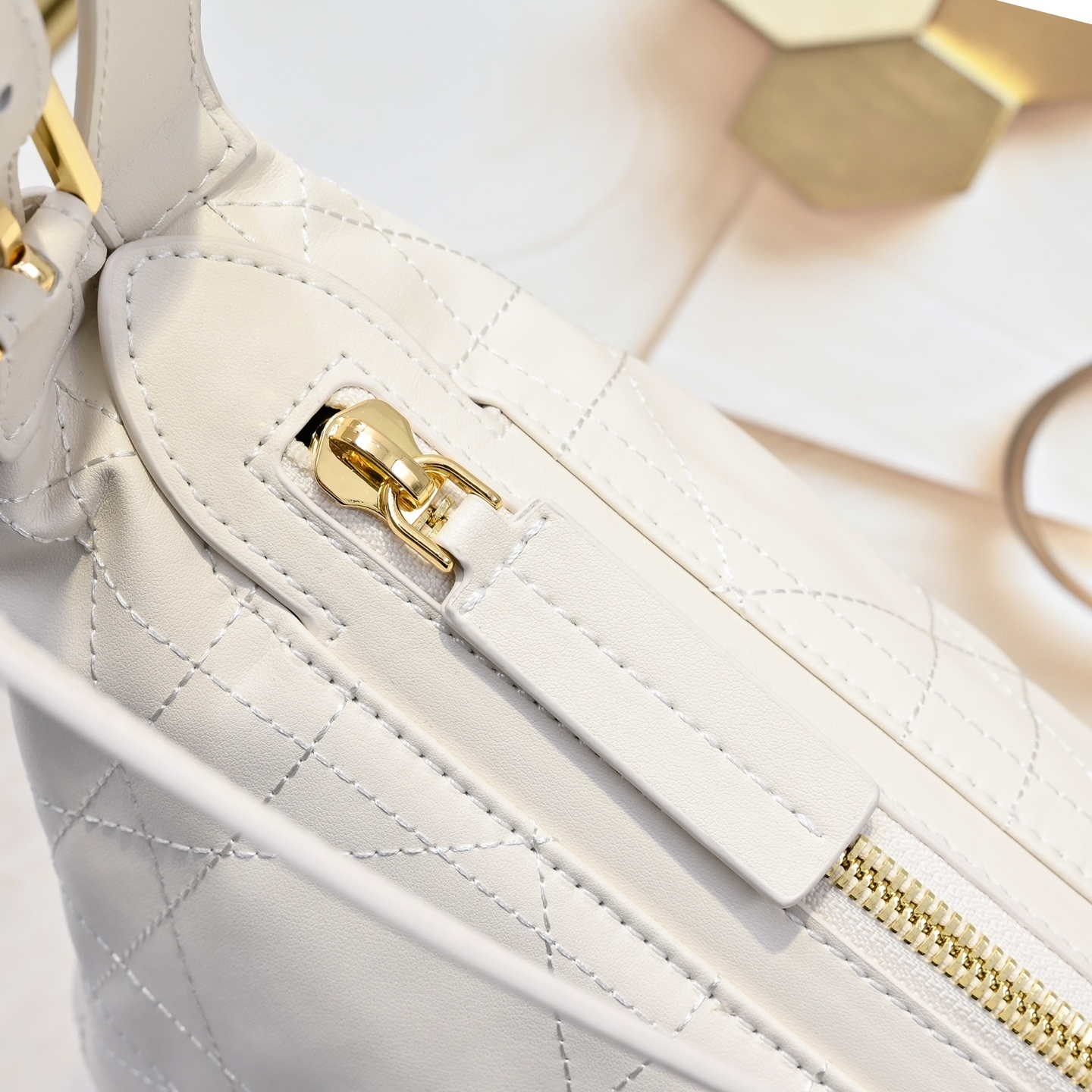 Christian Dior Parisロゴ:サイドの装飾用ポケットのレザー製ジッパーヘッドには、レトロゴールドメッキの金属製Christian Dior Parisロゴをあしらい、ヴィンテージ感と現代的な品格を融合させます。