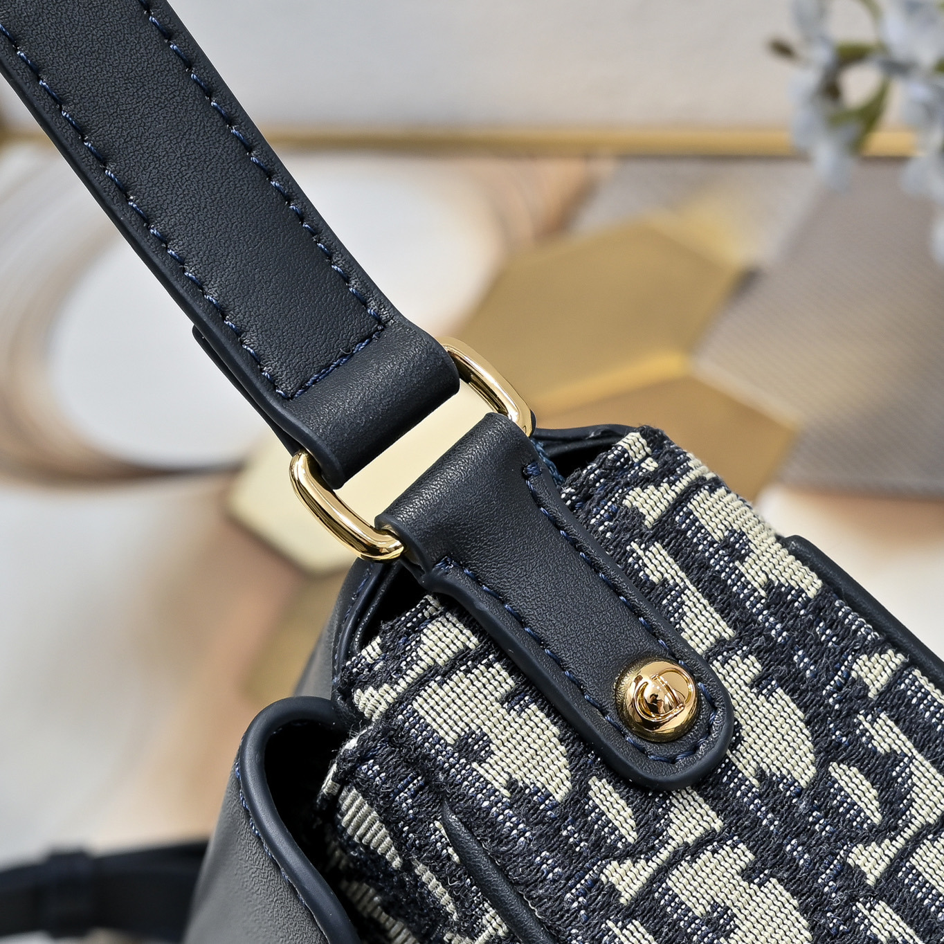 本体の主要素材にはグレー基調のD字布(灰D布)を採用し、一部にディオールの象徴「オブリークプリント」をブルーで施した生地を組み合わせました。D字布の丈夫さとオブリークプリントのクラシックさが共存し、「カジュアルな装いにも知的なエレガンスを添える」質感を生み出します。高密度に織られた生地は「軽量性」と「耐久性」を両立し、日常使いの擦れや汚れにも強く、「新品のような見た目」を長期間保ちます。