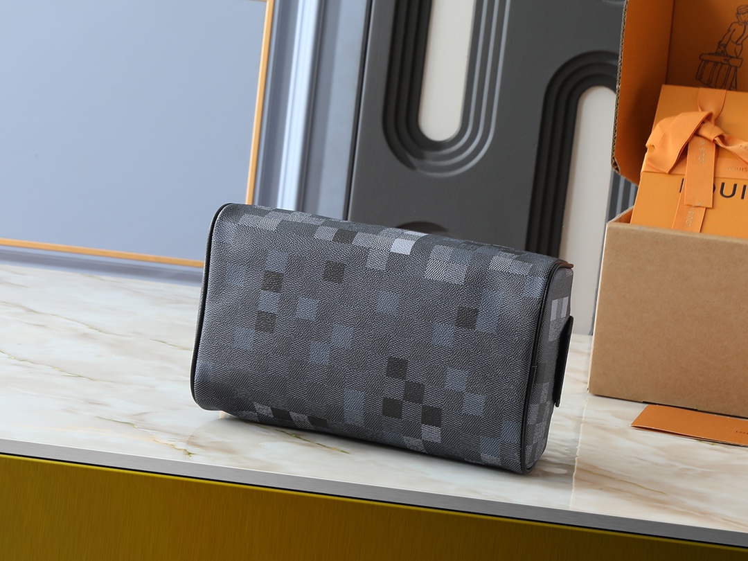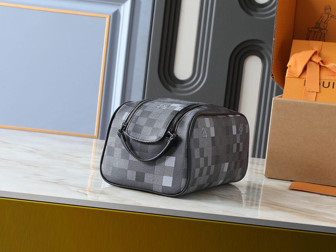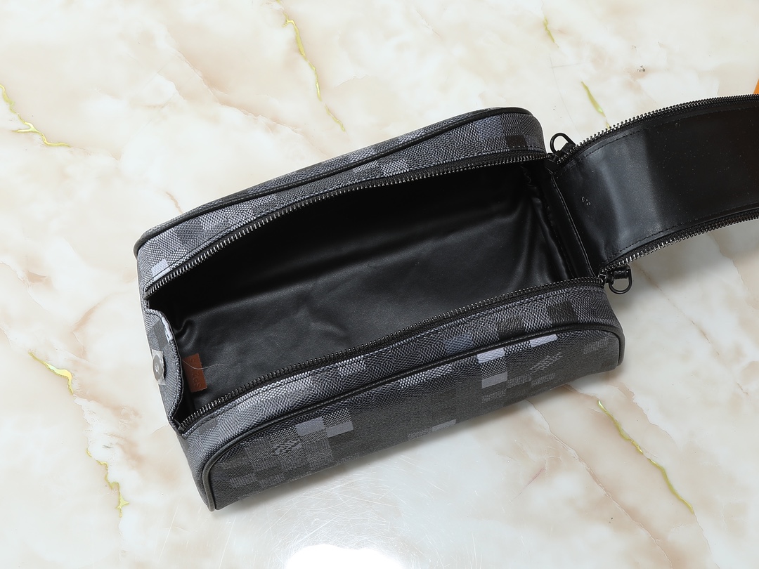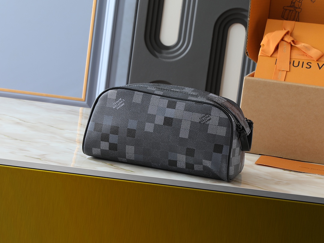 「ルイ・ヴィトン Dopp Kit 盥洗袋|ダモフレージュブラック×レザートリム|15×16.5×28cm|磁気閉じ式ジッパー仕様」