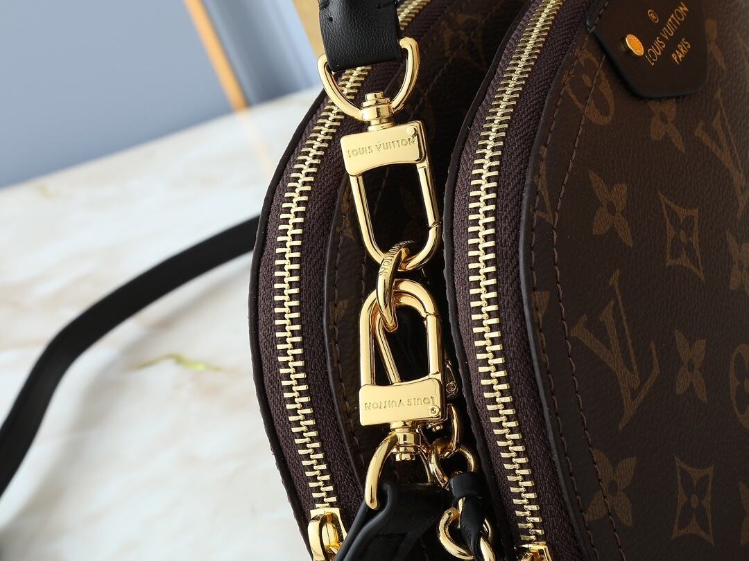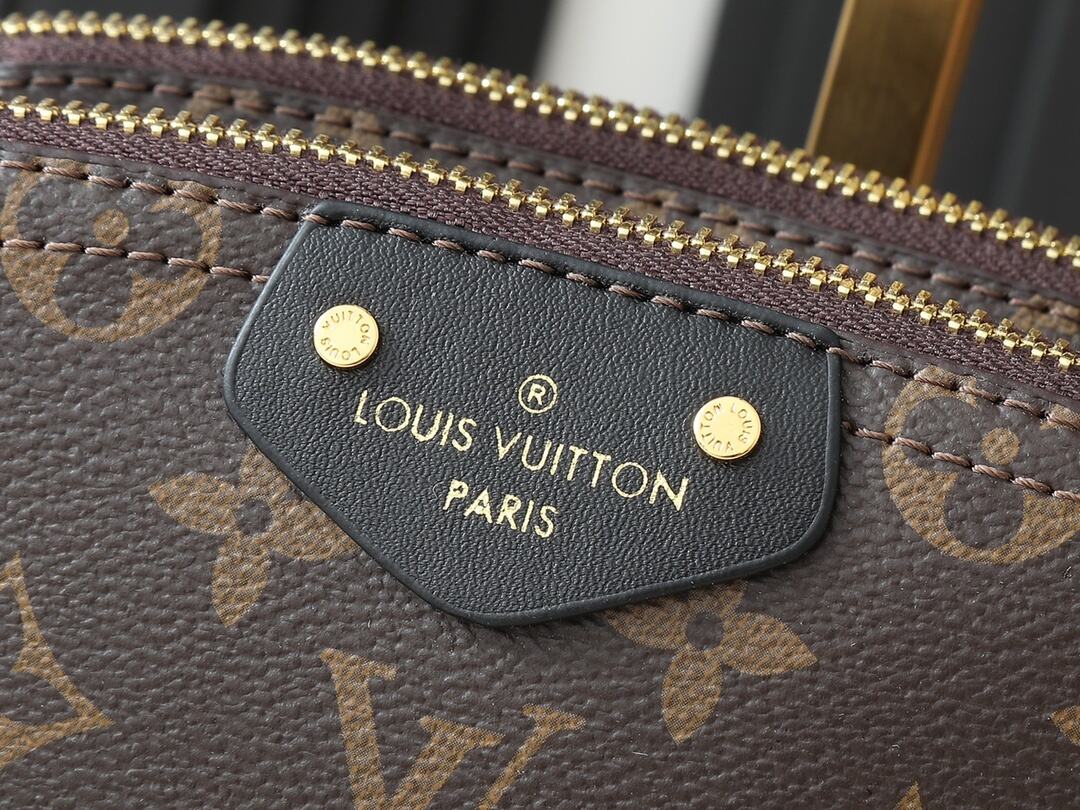 磁気式ロックシステム従来のプラスチック製ブローチに代わり、革製の磁気ロックを採用。軽量ながら防犯性向上し、0.3秒で開閉可能。ジッパープルには、18Kゴールド製のLVモノグラム小花インレイを施す。