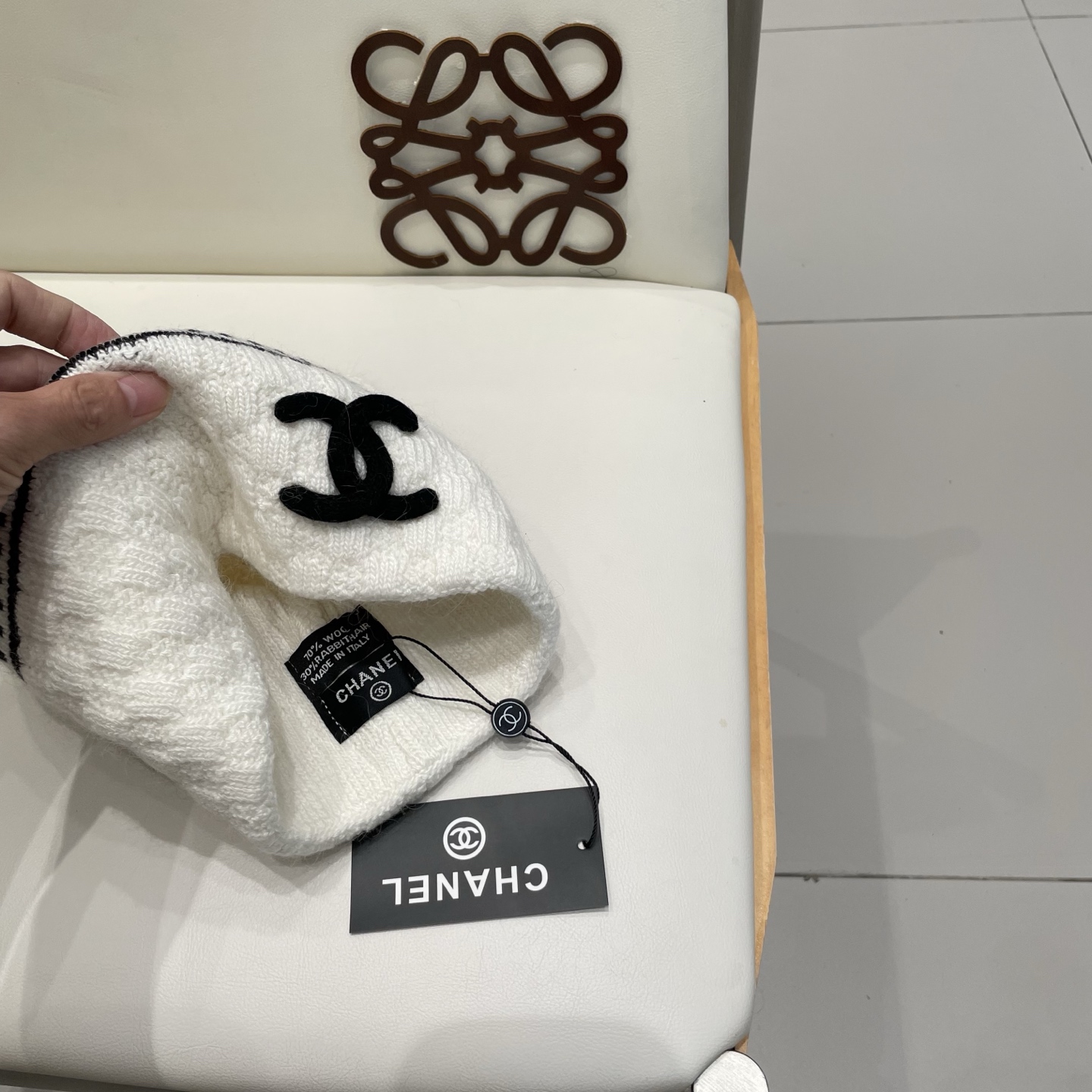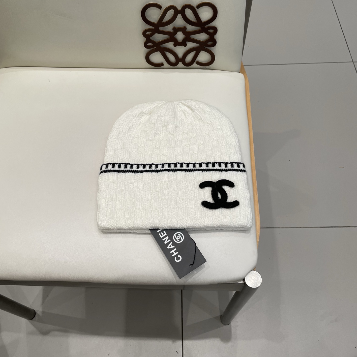ダブルCロゴ:シャネルの象徴である「ダブルC」エンブレムを立体刺繍で配置。シンプルな丸型のシルエットにアクセントを加え、高級感とモダンさを両立。