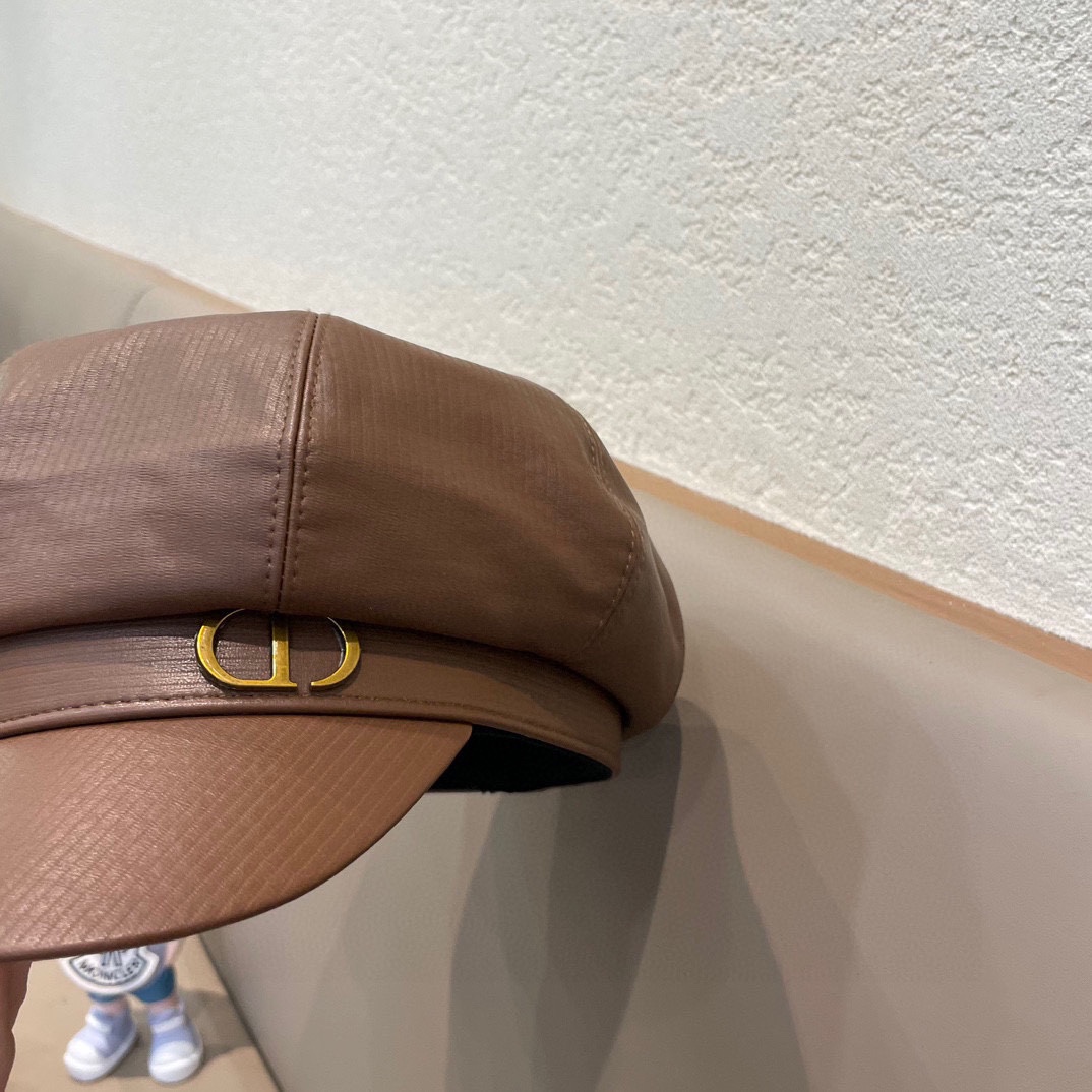 ディオール レザーレトロ八角ベレー 女性向け大頭回りフィット顔小さく見せる英倫風ポーンタイヤー画家帽 男女兼用クラシックデザイン