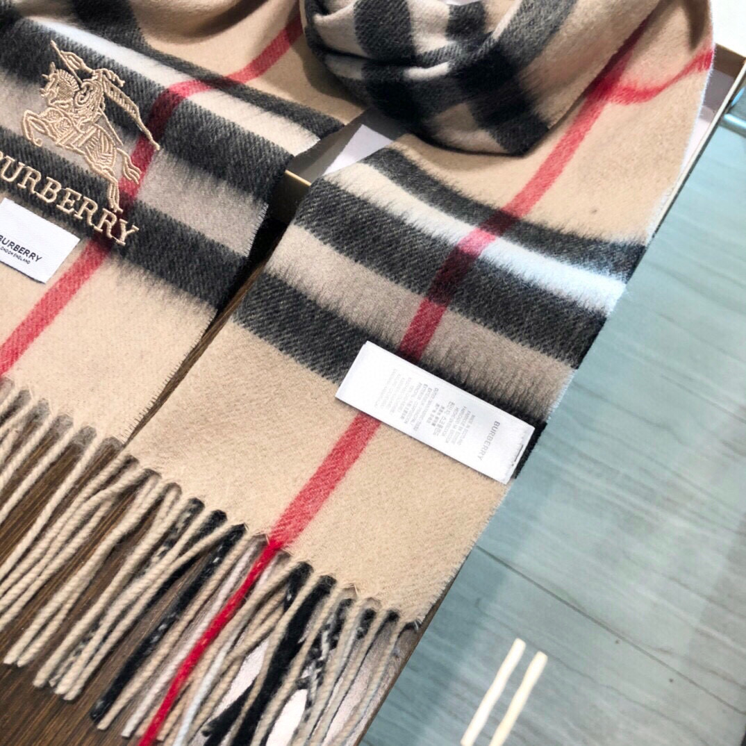 バーバリー公式コレクション 100%スコットランド産ウールダブルフェイス『ウォーターリップス格子』30×180cm ハイエンドマフラー 限定輸入生地と職人技の極致