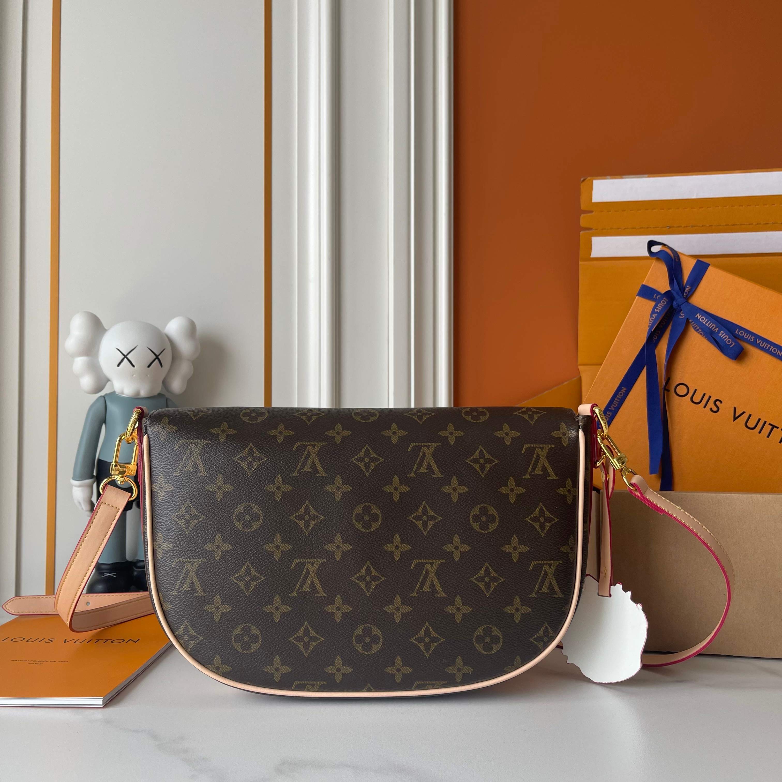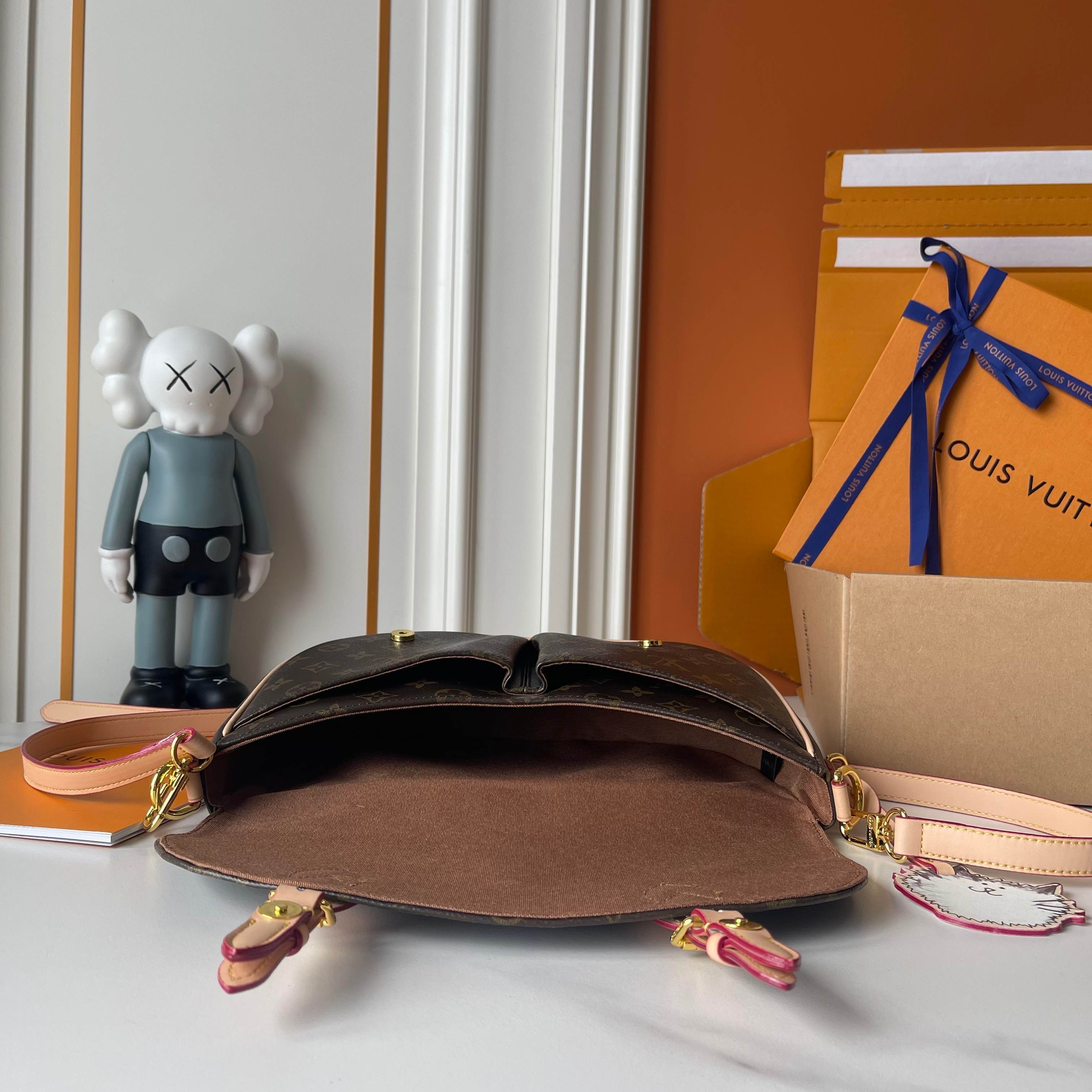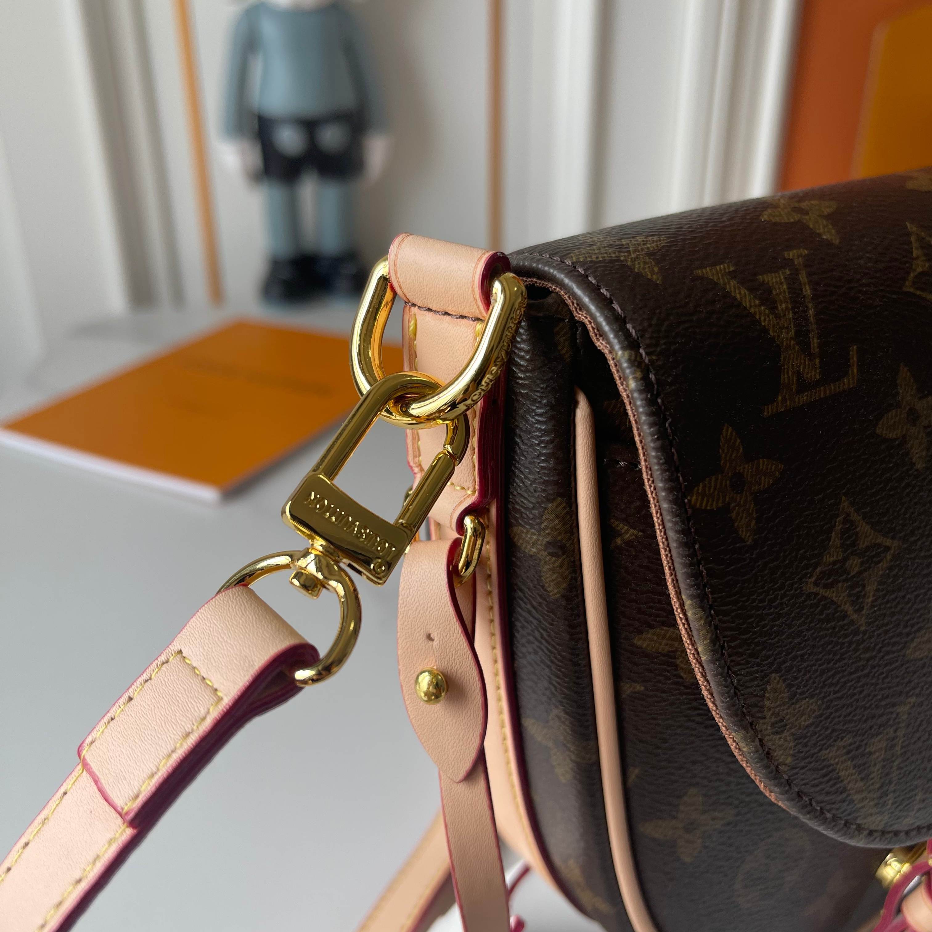 耐久性:コーティング加工済みのモノグラム帆布と、牛革を使用したストラップで、日常の使用に耐える堅牢性を実現。
