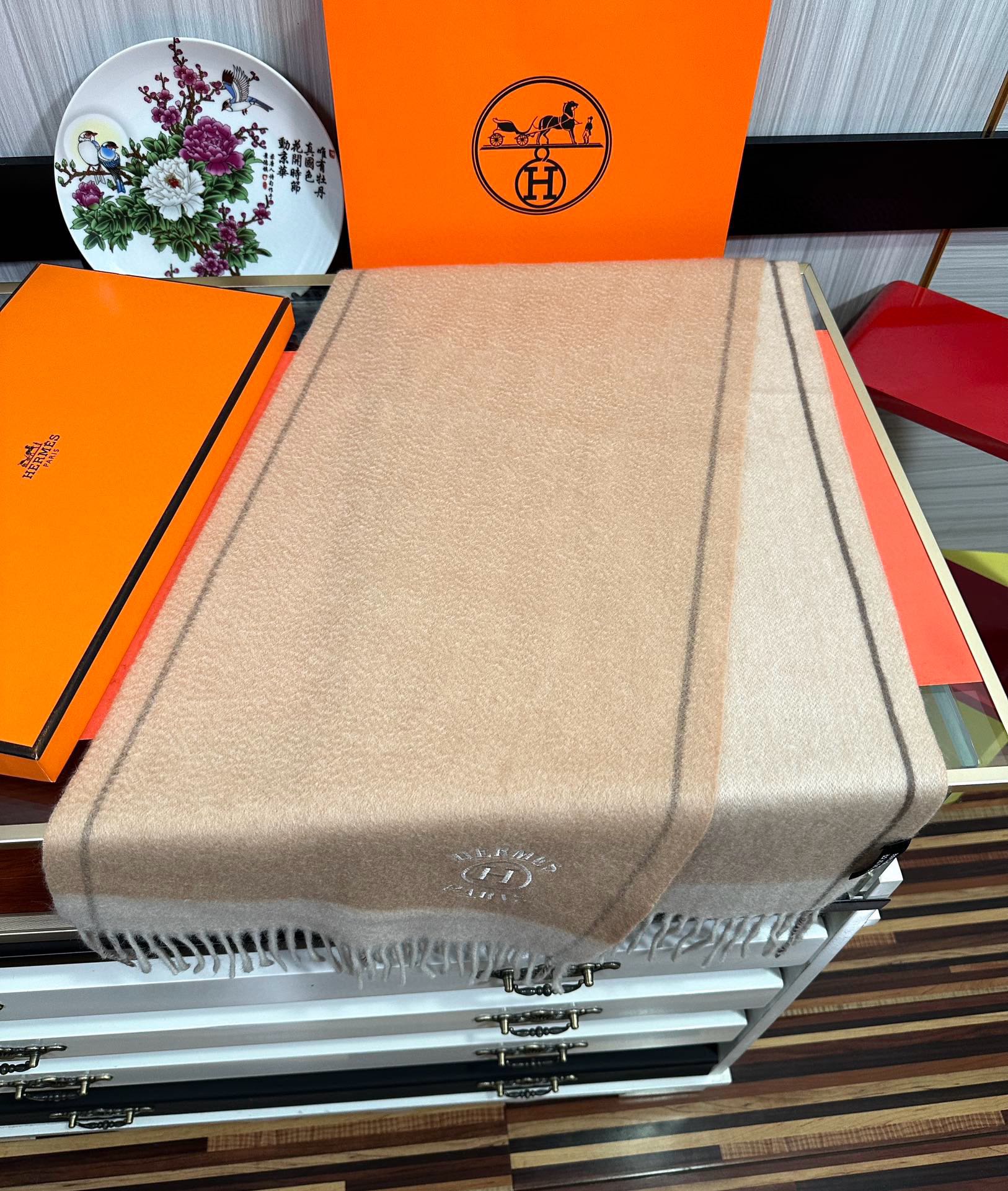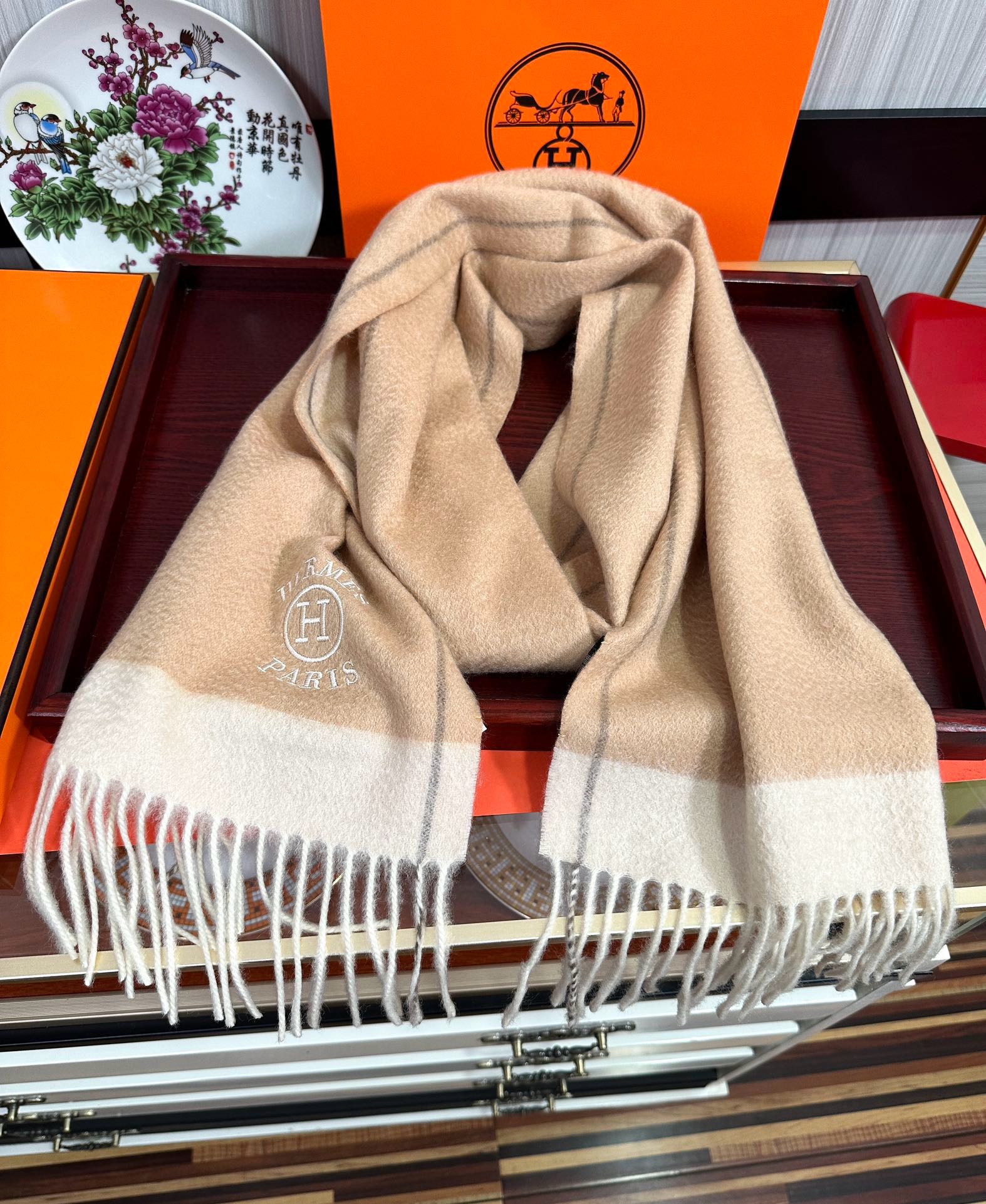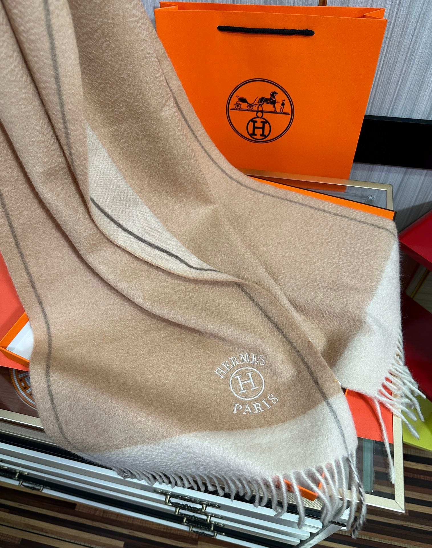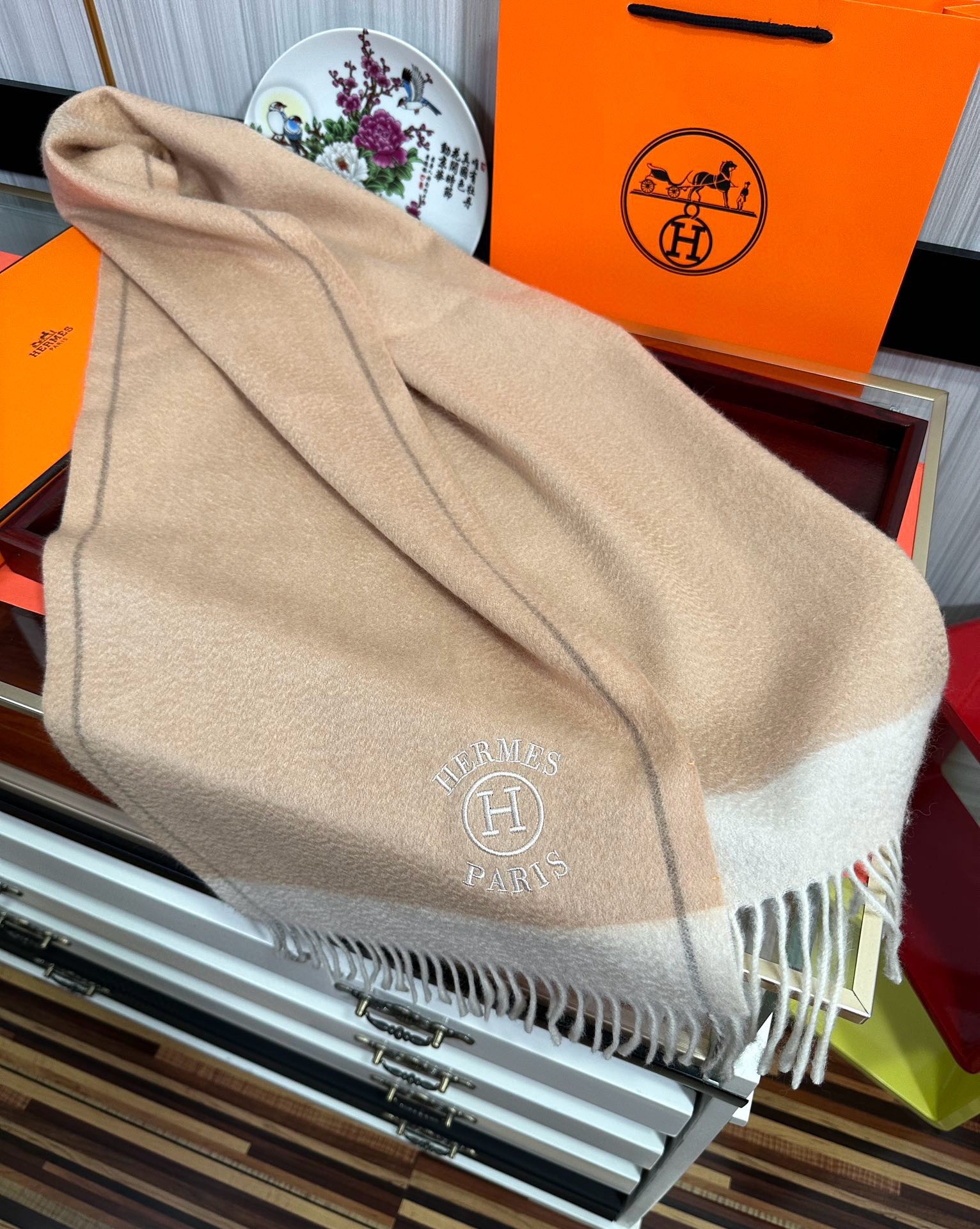 【2025年最新】エルメス 105%山羊绒 カップルモデル チェック柄 レギュラー ソフトショール ~内モンゴル産山羊绒使用~ 永遠のクラシック柄!極上の柔らかさと保温性