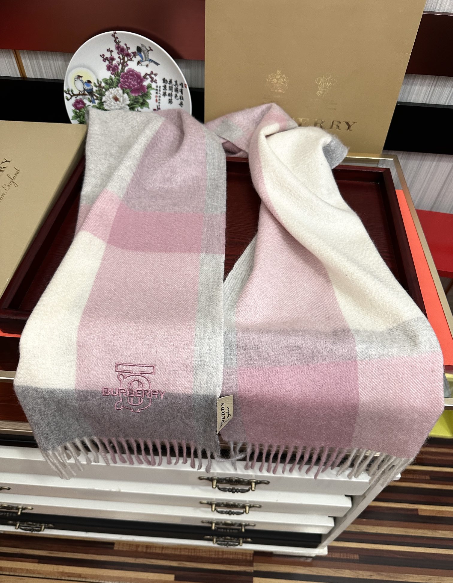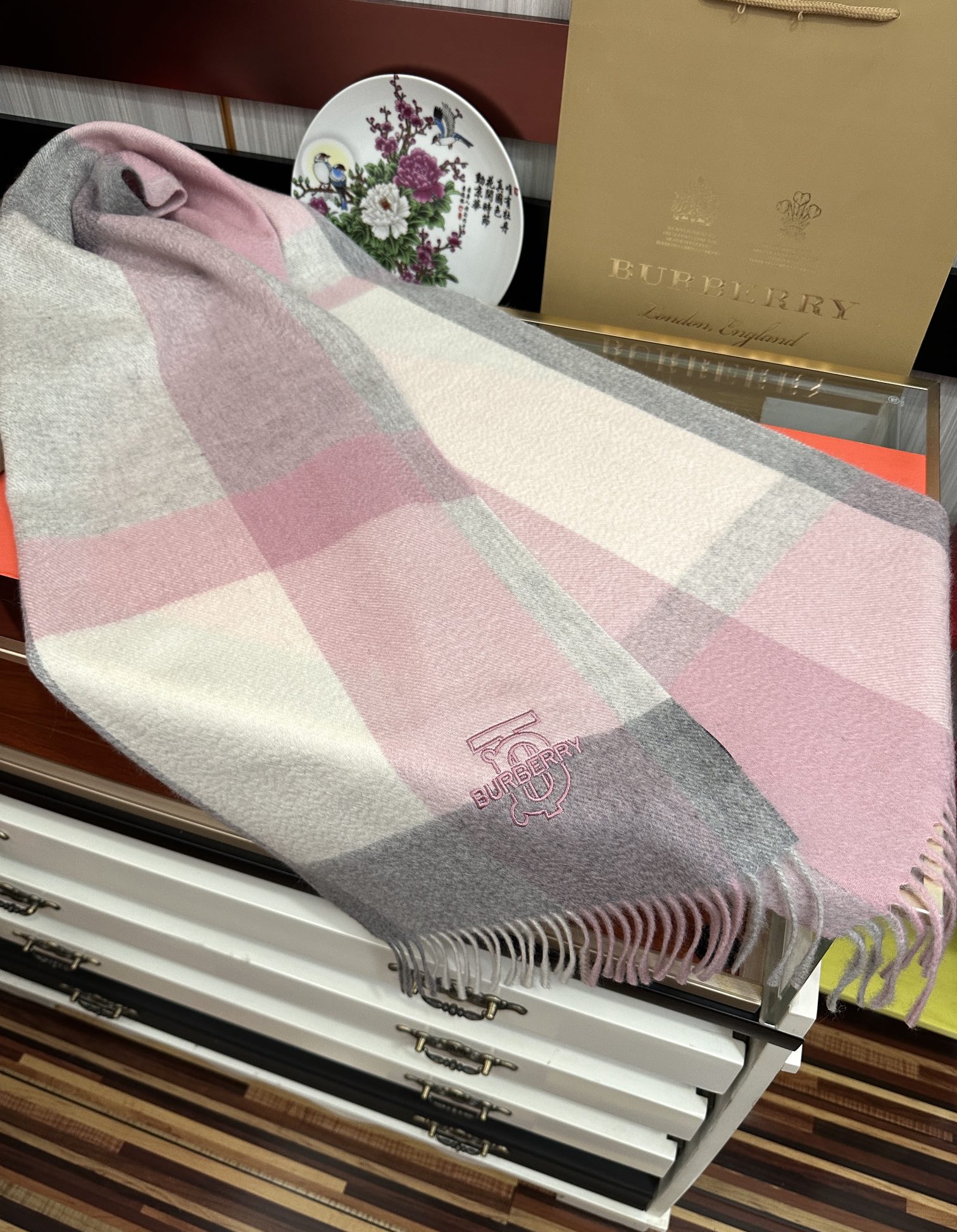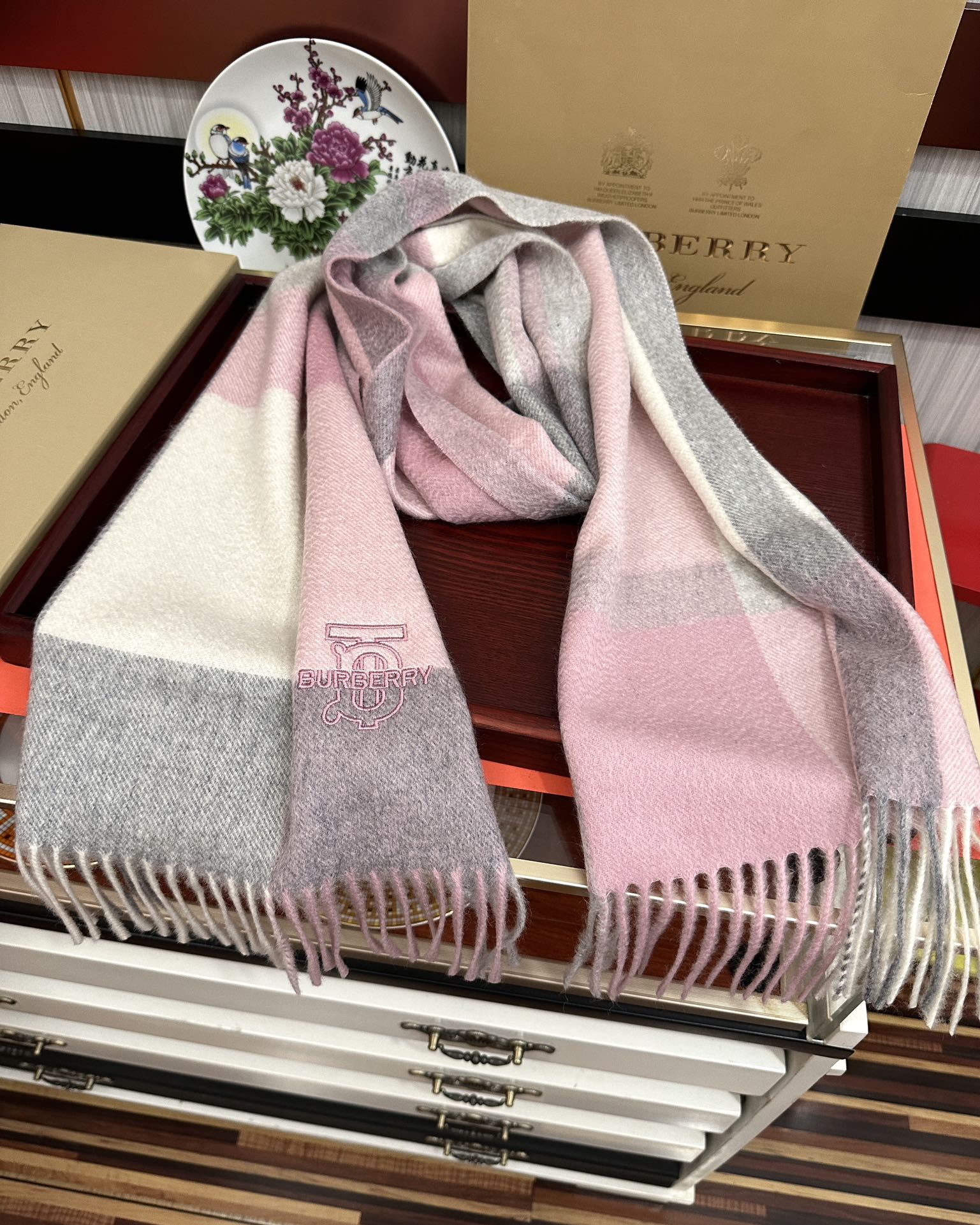 【2025年秋冬】バーバリー カシミヤチェックスカーフ(男女共通) ネイティブカシミヤ×伝統模様