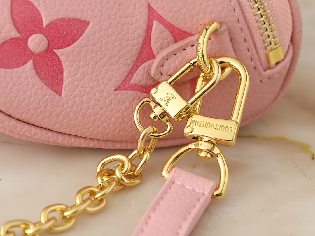 17.0×12.0×9.5cm(長さ×高さ×幅)のコンパクトなフォルムは、デイリーから旅行まで幅広く対応。耐久性に優れたTaurillon革のメインストラップと、装飾的なLVモノグラム浮彫りバッジを装備。可拆卸式の調節可能なショルダーストラップ(長さ32.0-44.0cm)と、取り外し可能なゴールドトーンチェーン(長さ32.0-44.0cm)を搭載し、バンバッグ/クロスボディ/ショルダーバッグとして自在に変幻自在です。