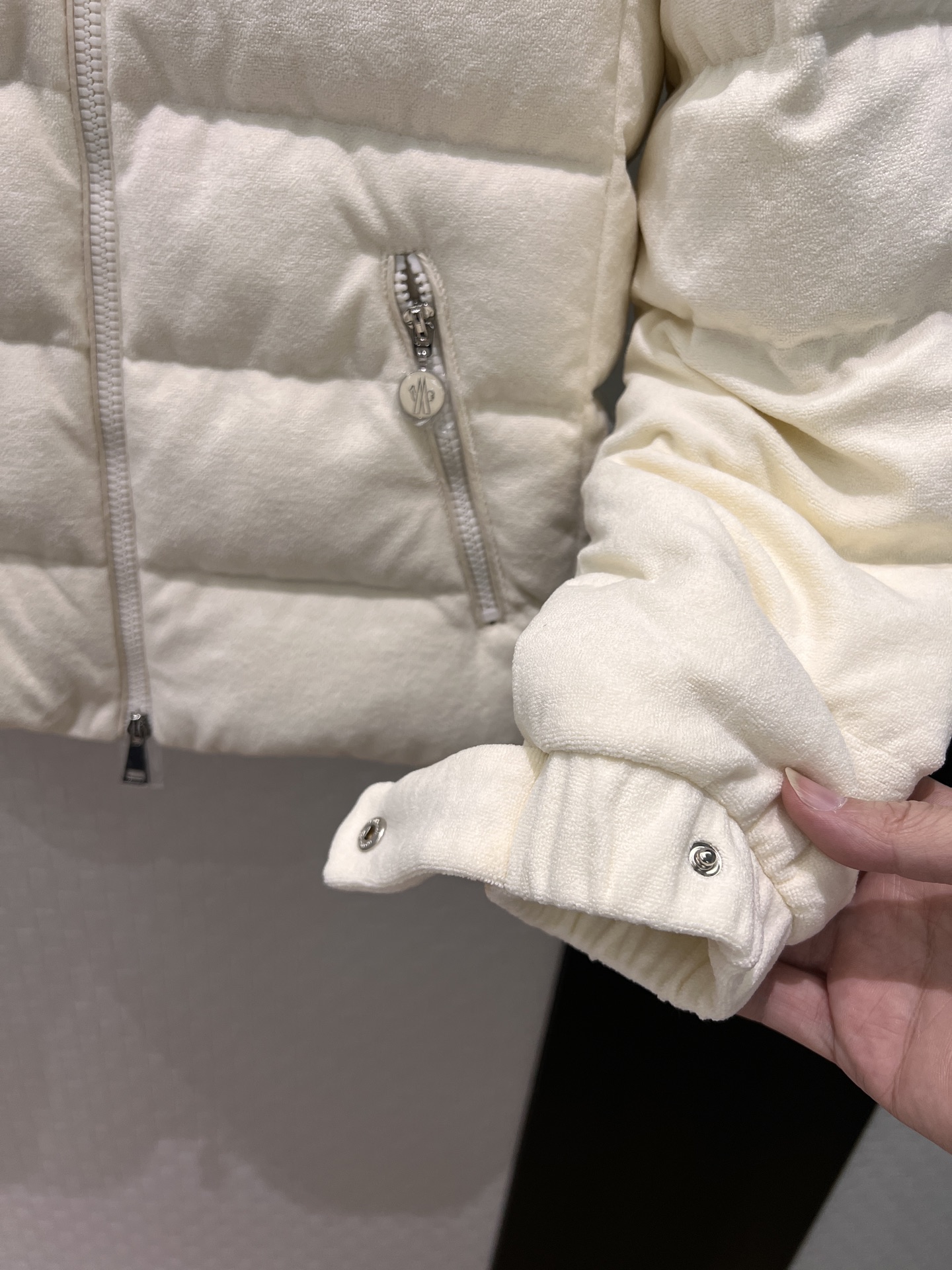 袖口にモンクレールの刺繍ロゴを配置。シンプルなシルエットにブランドアイデンティティを強調