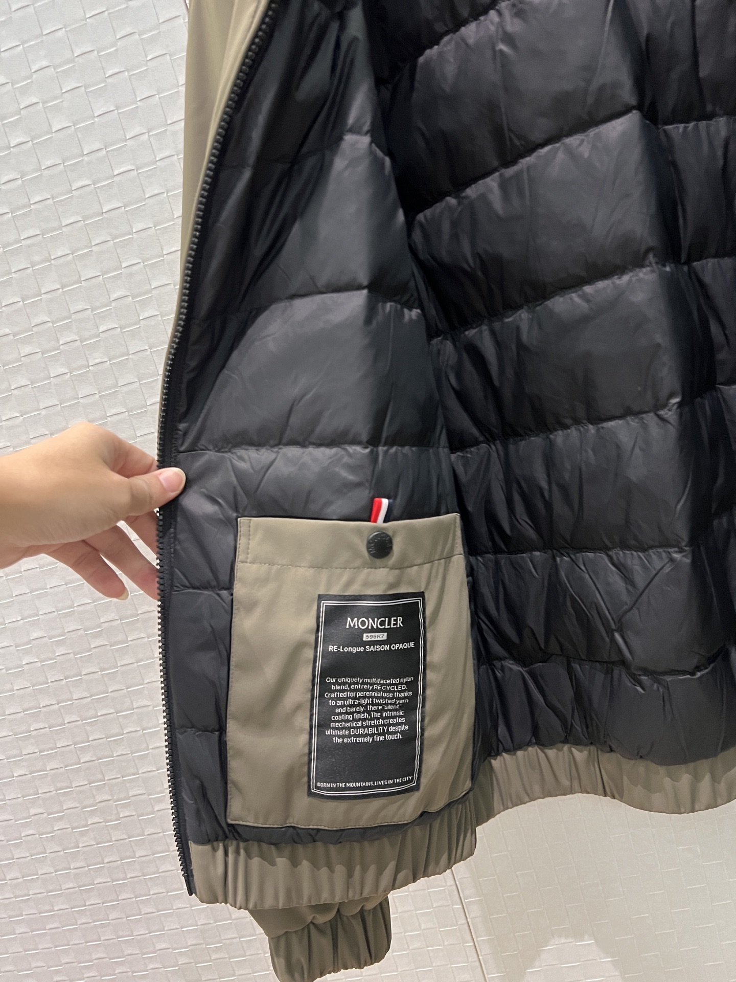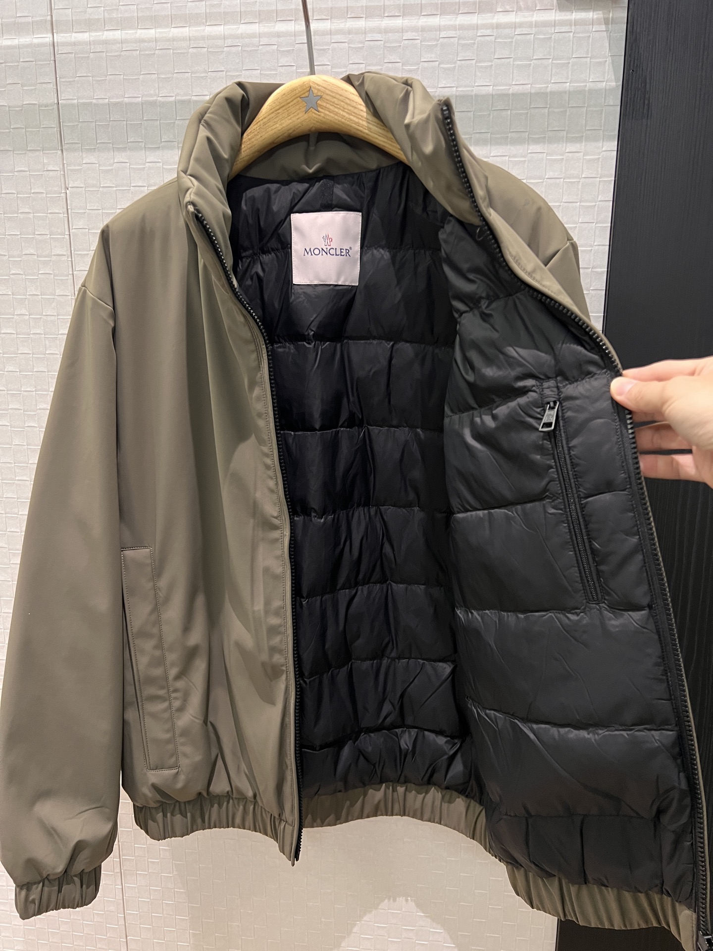 モンクレールの2025年最新作として登場!立ち襟デザインにオーバーサイズシルエットを融合させたダウンジャケットです。軍緑×ブラックの2トーンカラーで、ストリートファッションからカジュアルウェアまで幅広くマッチします。