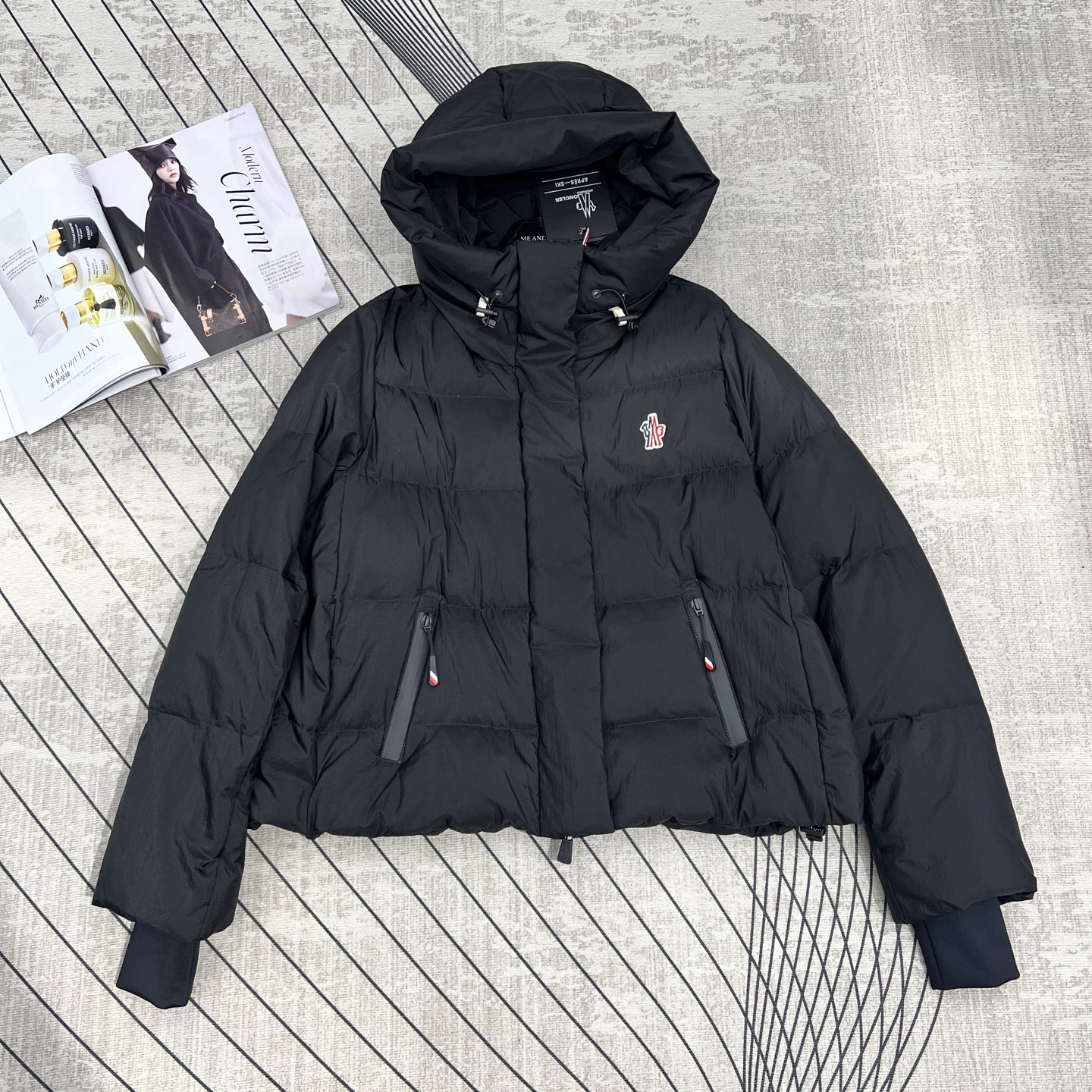 モンクレール 2025秋冬シーズン 連帽ドールスタイルダウンジャケット 刺繍エンブレム付き 軽やかなボリューム感 高級感あるカジュアルウェア