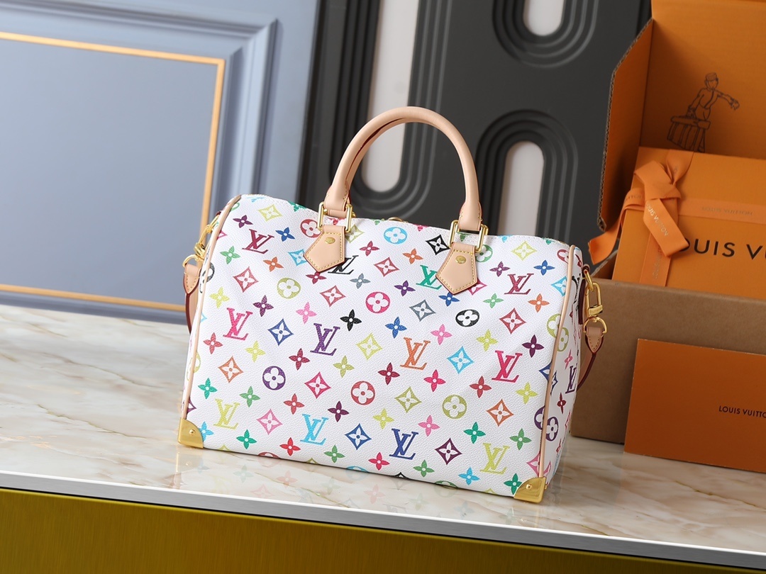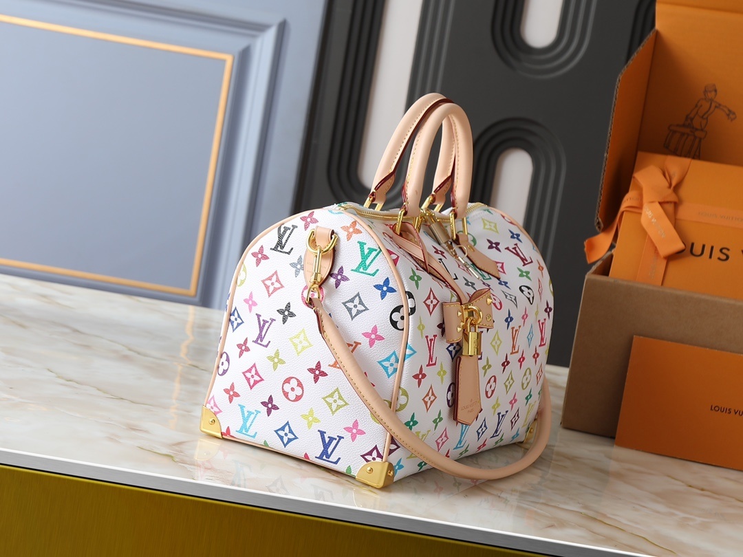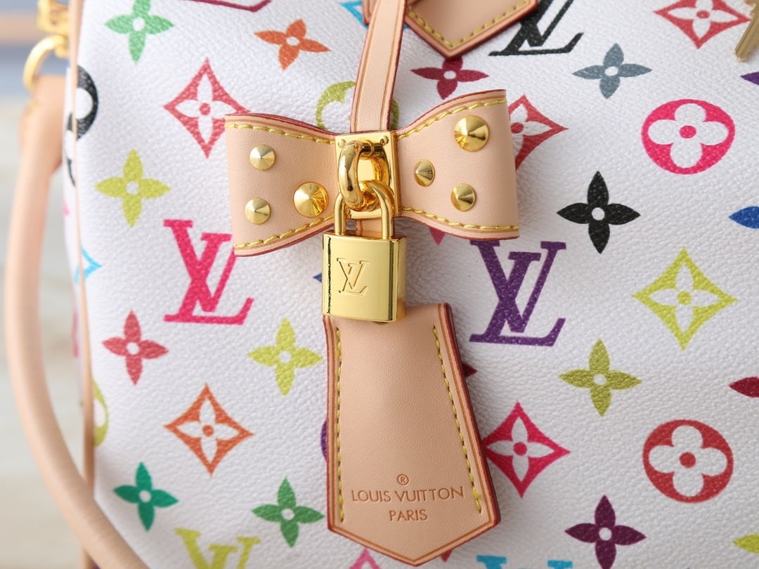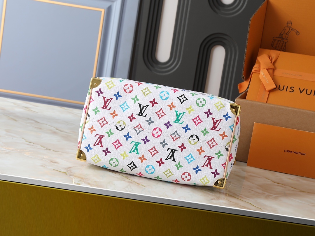 【ルイ・ヴィトン × 村上隆】Nano Speedy 手袋|33色モノグラム×牛革縁取り 白三彩・黒三彩デザイン 世界的爆発的人気 セレブ愛用 30cm大容量