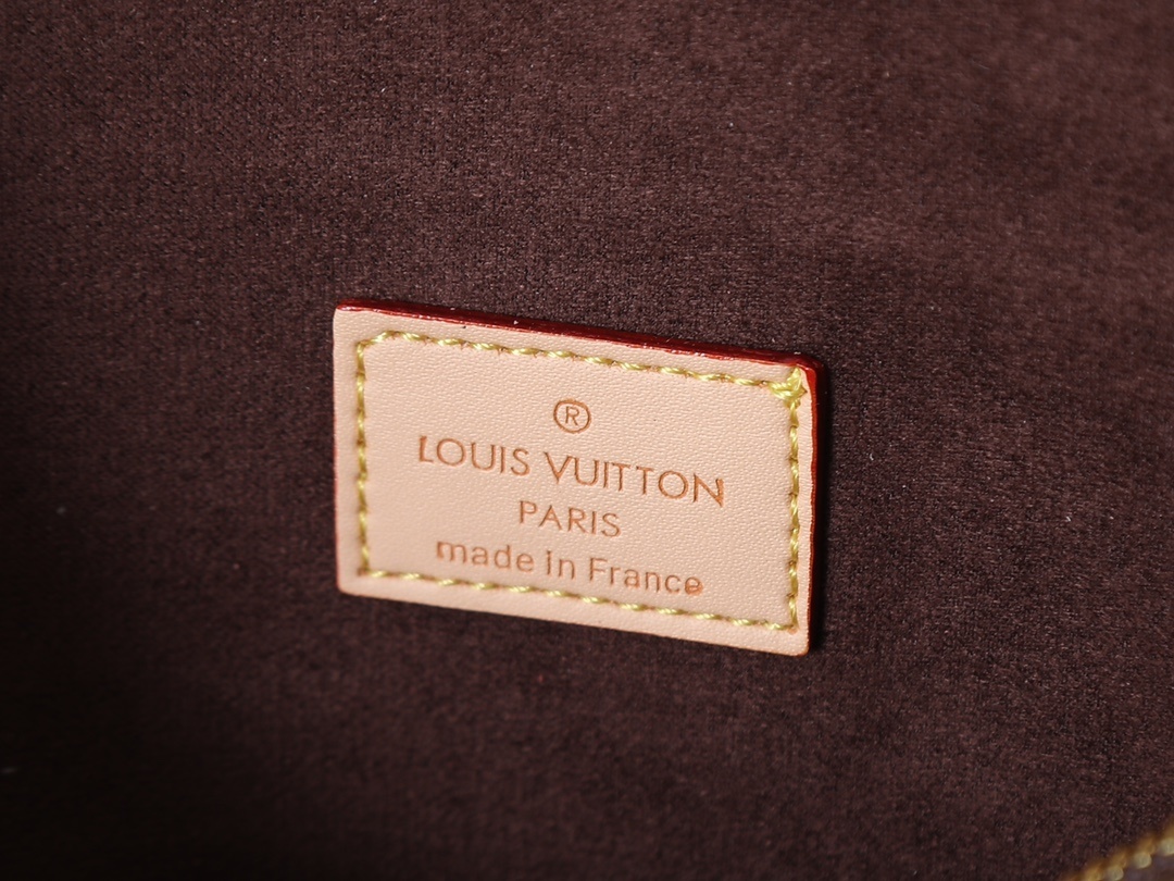 本体はモノグラムキャンバス(ルイ・ヴィトンの伝統的な花柄帆布)をベースに、牛革(ぎゅうかく)の縁取りプリントを施したデザイン。キャンバスの耐久性と牛革の柔らかさが絶妙に調和し、手触りの良さと高級感を両立。Nano Speedy特有のコンパクトなボディは、女性の手のひらに自然に収まる精巧な造形で、日常使いから特別なシーンまで幅広く対応します。