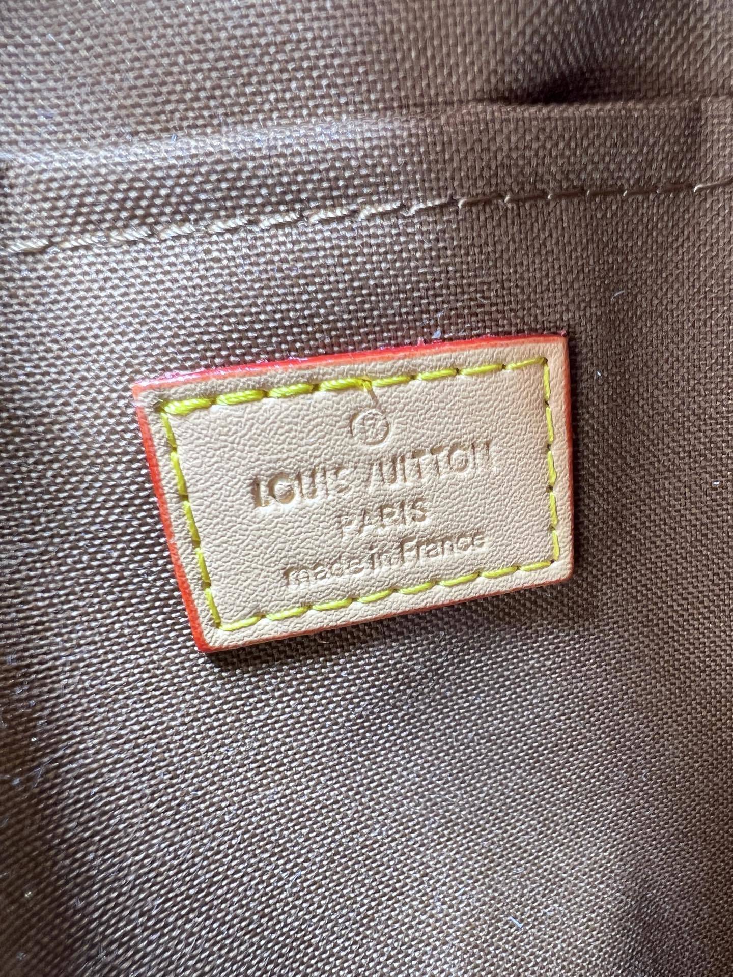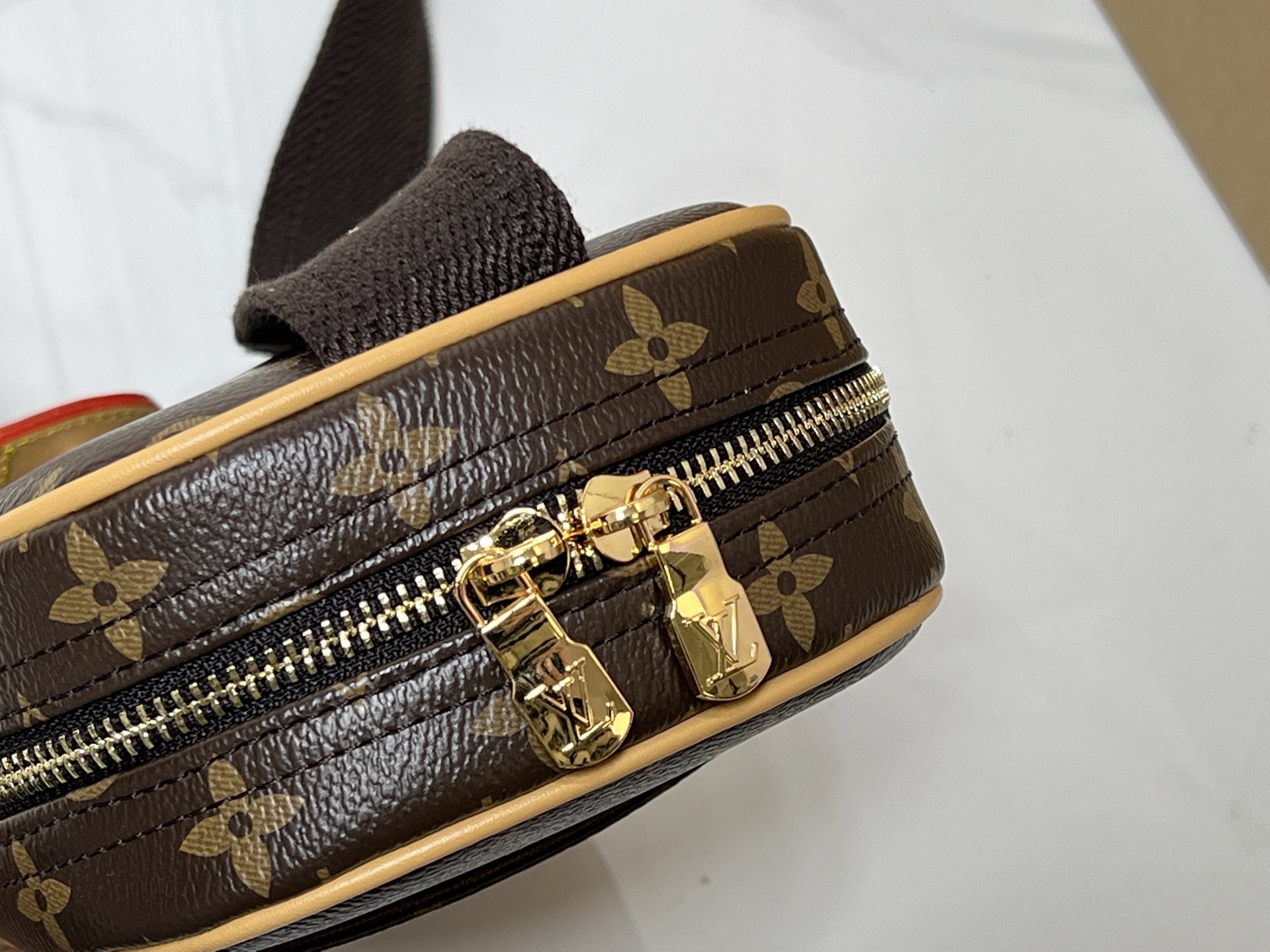 モノグラムキャンバス製ボディ:本体はルイ・ヴィトンの代名詞「モノグラムキャンバス」(花柄帆布)を採用。耐久性に優れ、日常使いでの擦れや汚れにも強く、長年愛用できる品質を確保。軽量な素材感が持ち歩きの負担を軽減します。