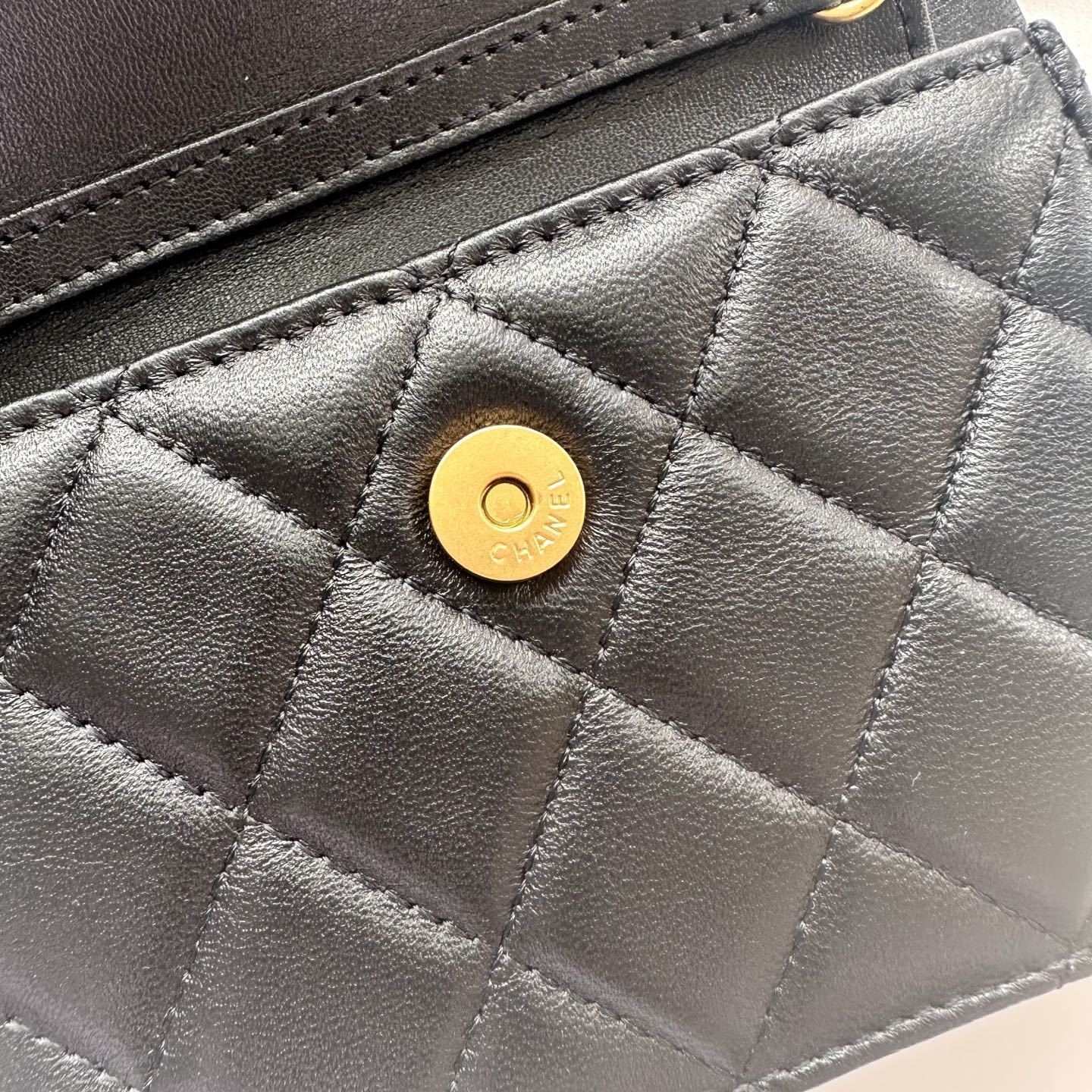 ゴールドカラー留め具(金扣):開閉部の留め具は「ゴールドカラー」で統一。シャネルの職人技による精密な彫刻が施され、光沢感がデザインの格調を引き立てます。使いやすさと美観を両立させた「機能美」の典型です。