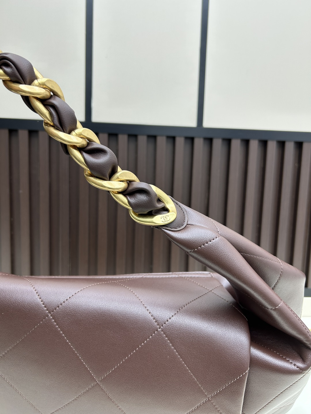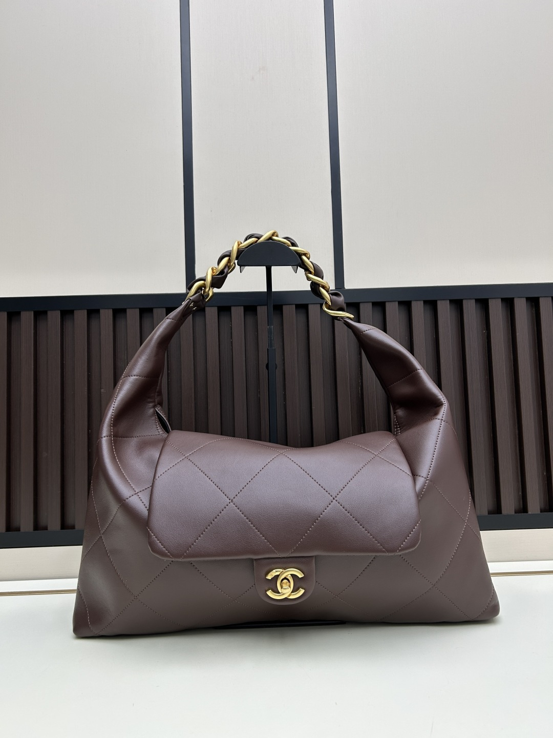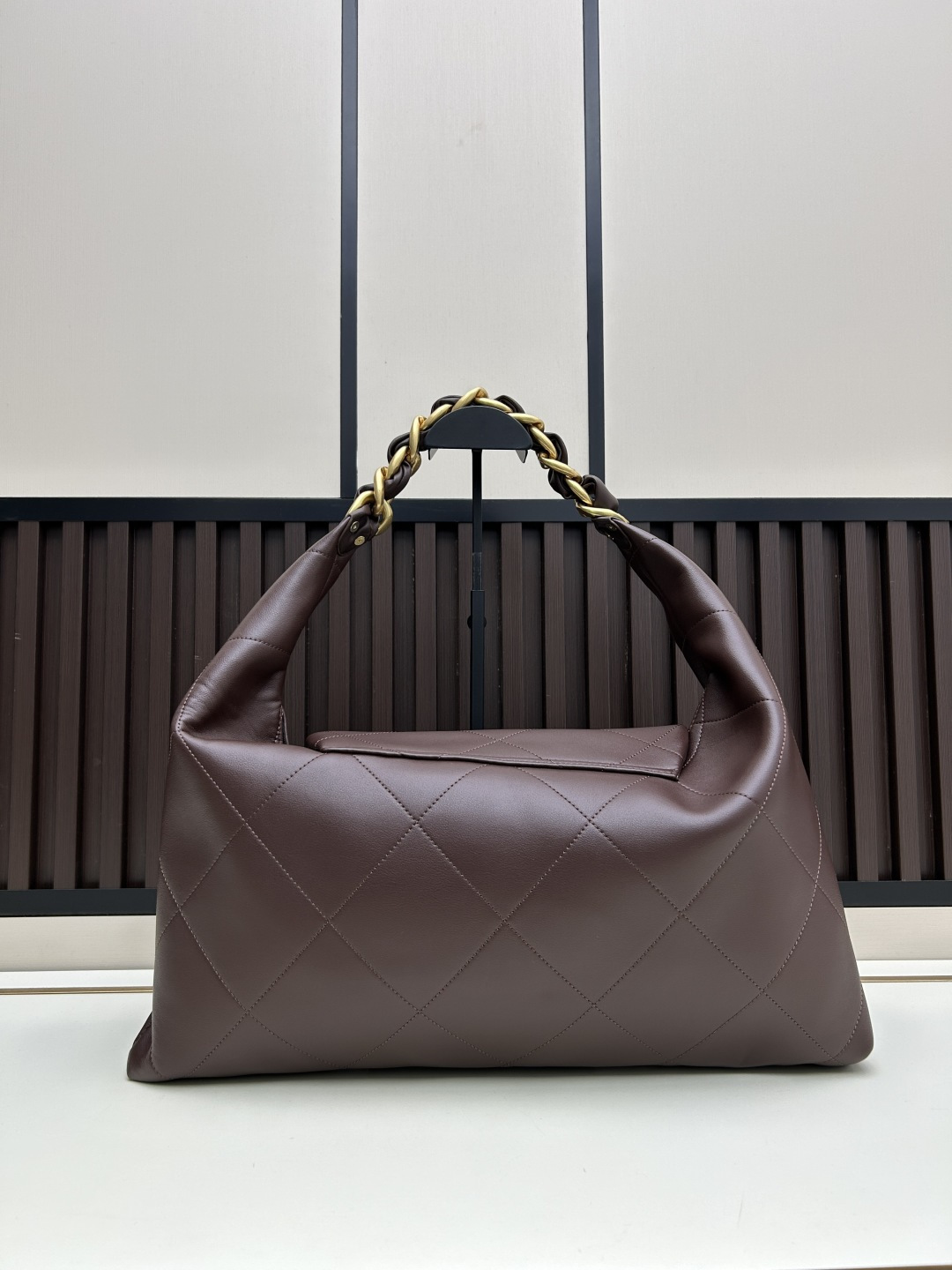 シャネル 25K ヒッピー風ホーボー マキシバッグ|秋冬ランウェイモデル|太めゴールドチェーンで放つ圧倒的オーラ