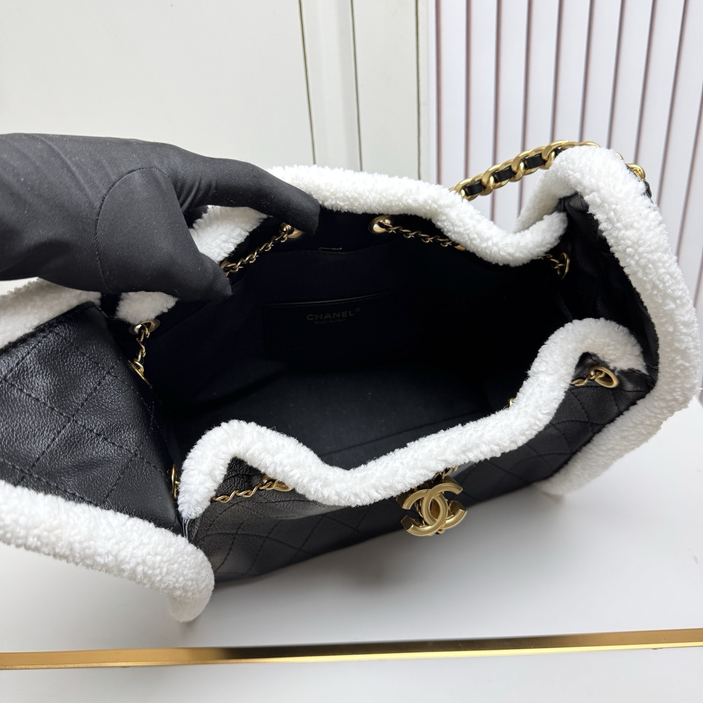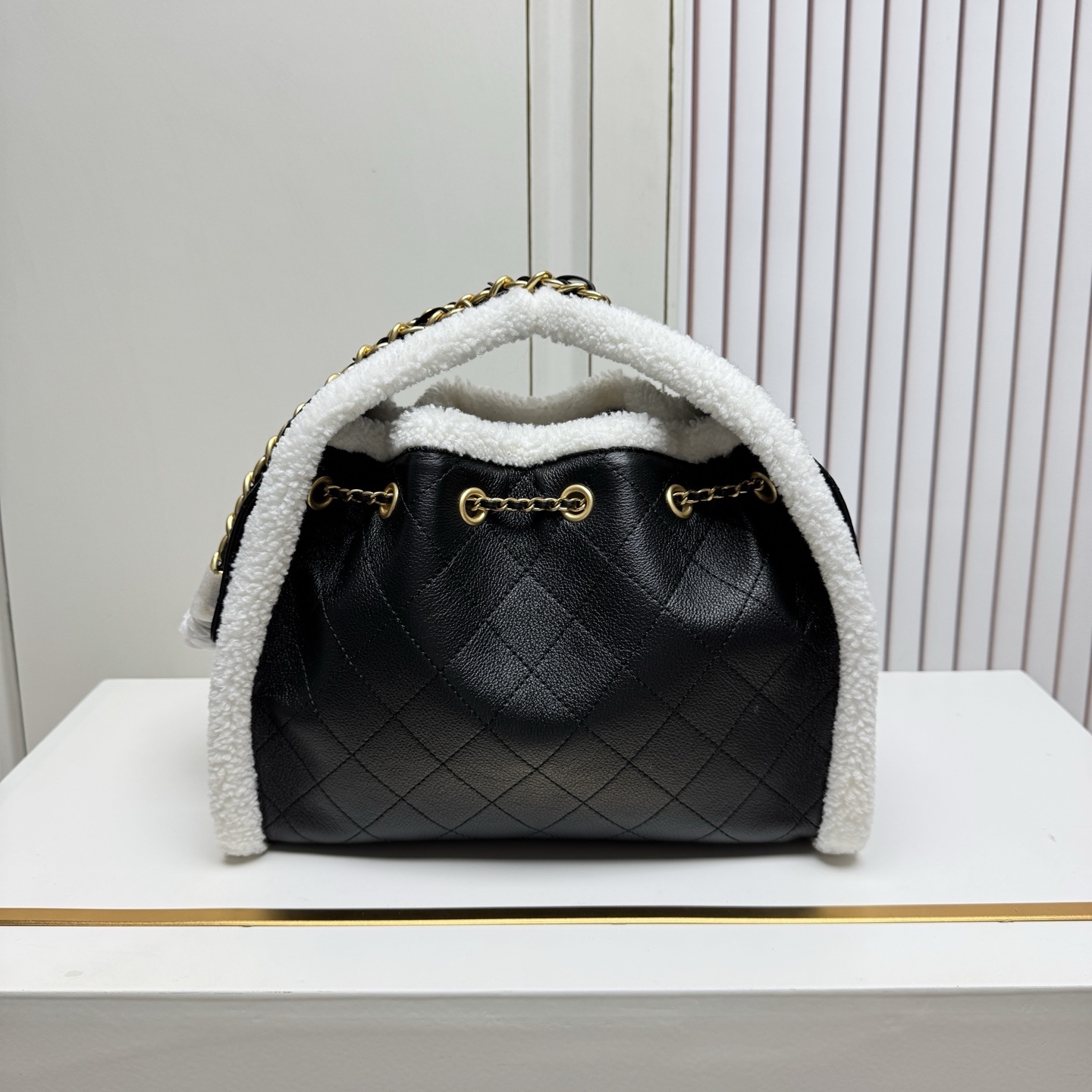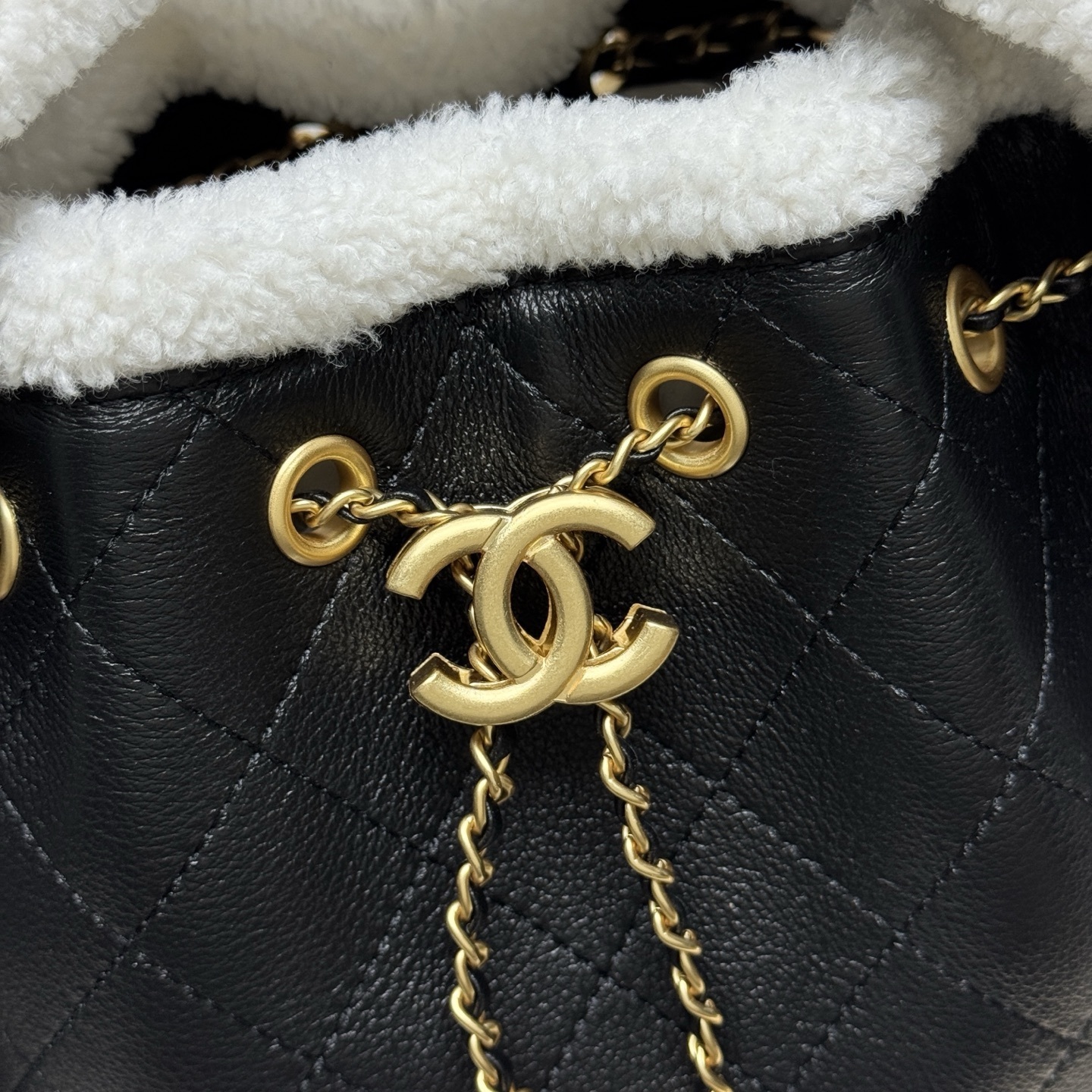 シャネル 25C 秋冬ランウェイ爆款 ショッピングバッグ|輸入上質牛革×秋冬特製ラムウール飾り|伸縮金具×多ポケットで叶える大容量実用美