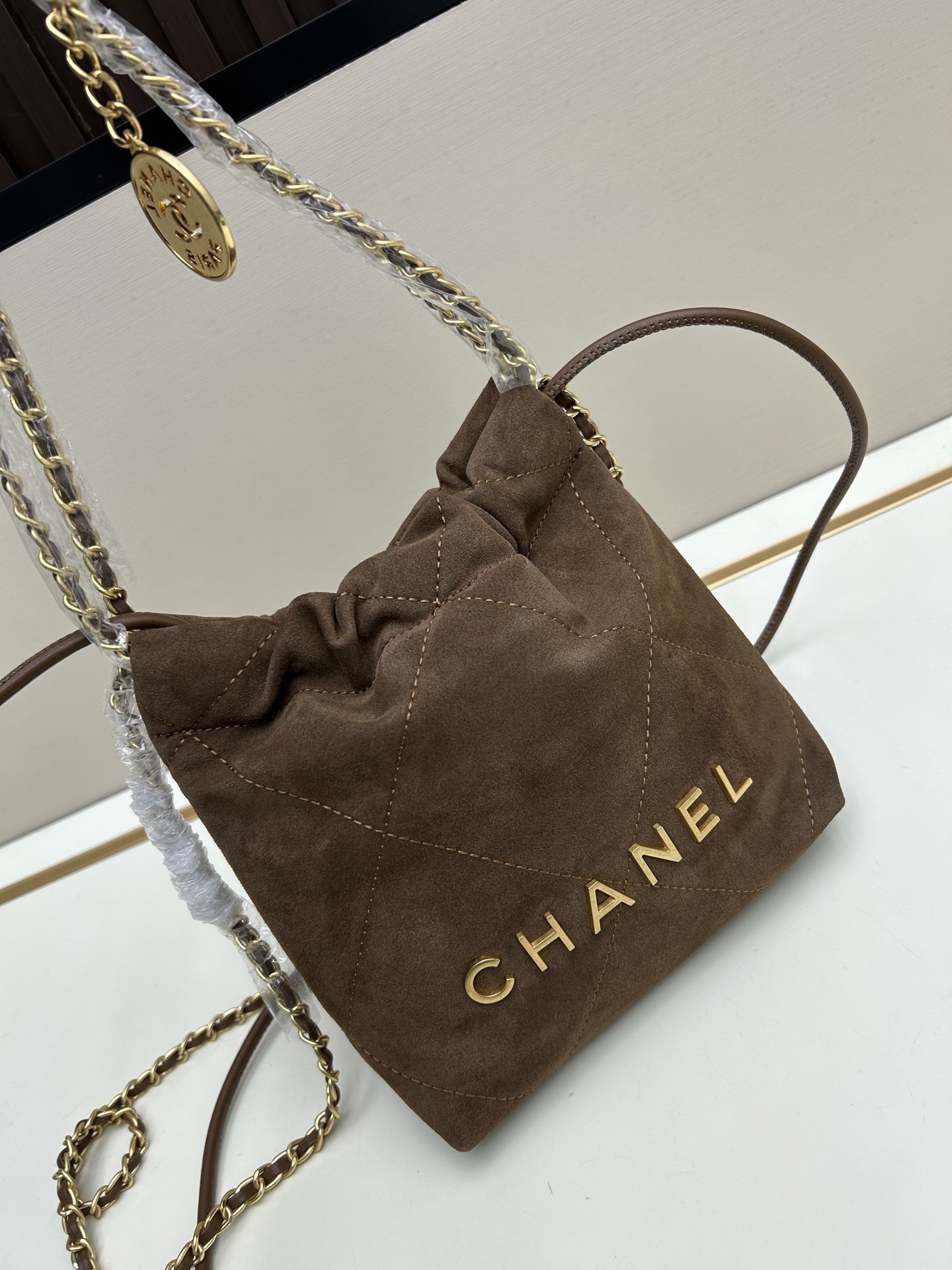 シャネル 22 Bag ミニショッピングバッグ 23S|アンティーク金扣×秋冬スエード鹿革|数字命名の「必須爆款」が放つトップクラス人気
