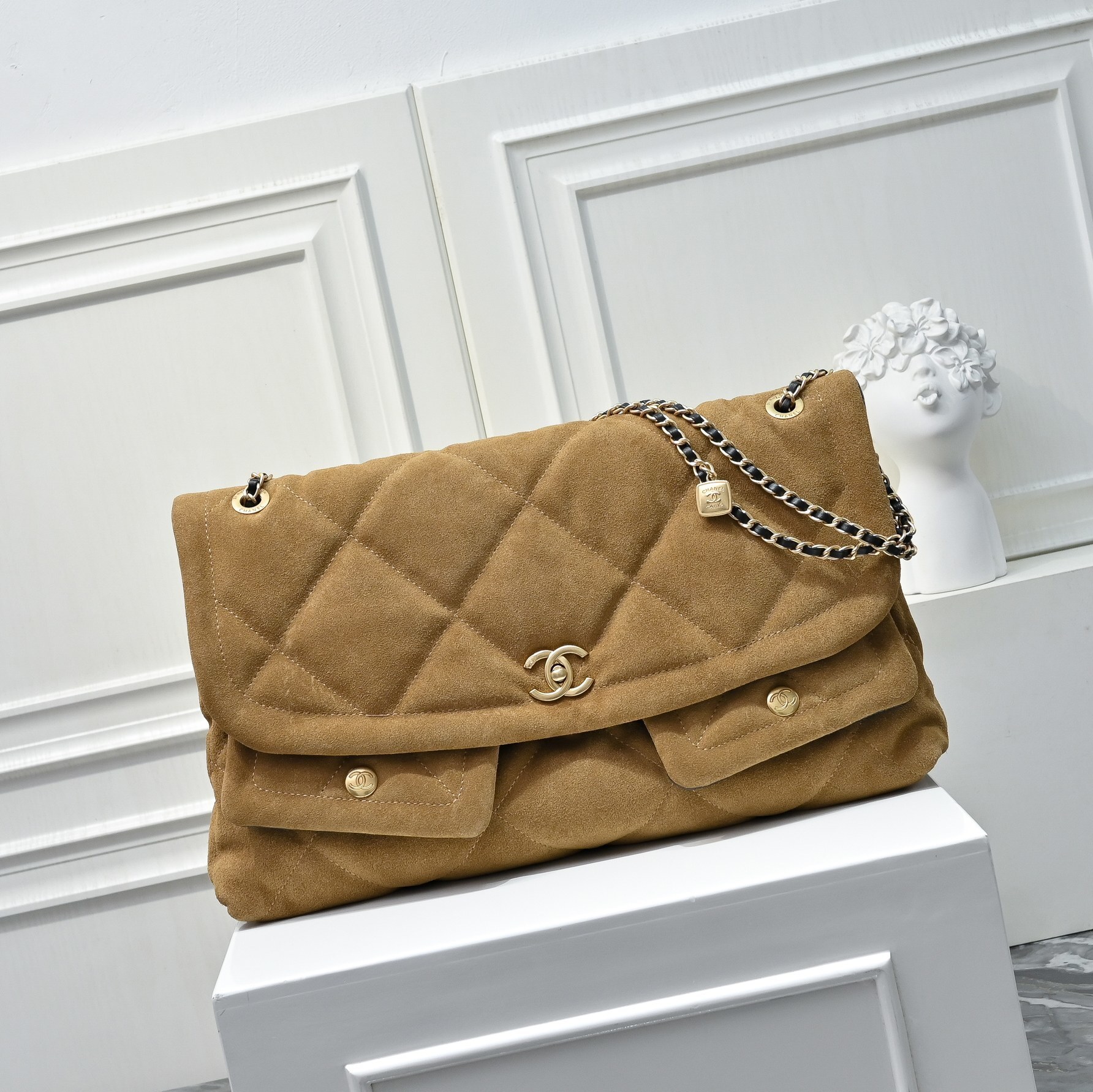 シャネル 25K 新作 ダイヤモンドキルト トート型フラップバッグ|アンティーク調ゴールド金具×輸入スエード|ヴィンテージ風大容量3WAYデザイン