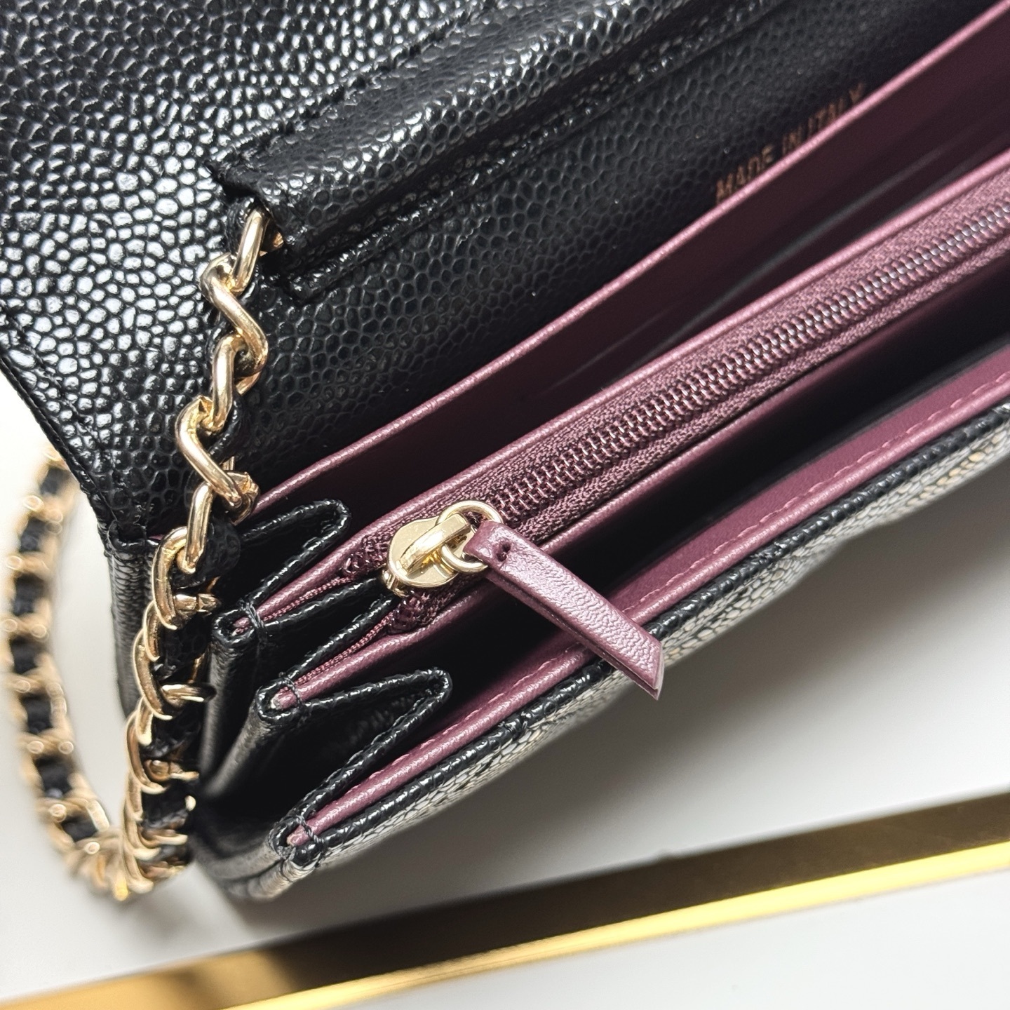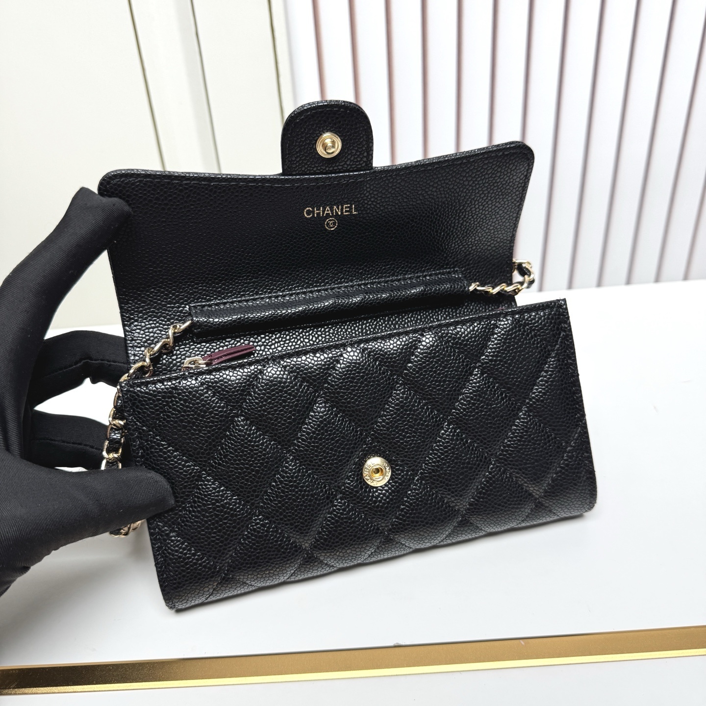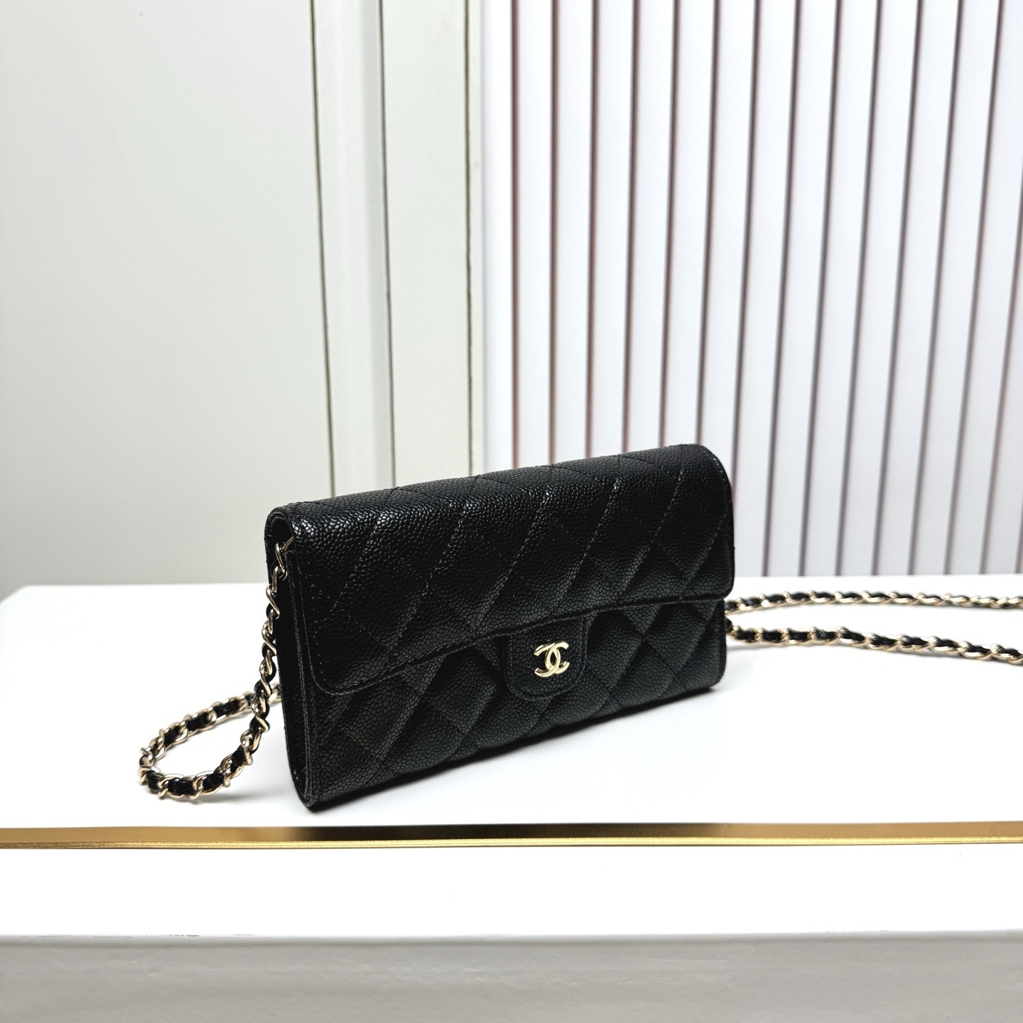 デザイン:ダイヤモンドキルト(菱格纹) / ダブルCロゴ(フロント中央) / 調節可能チェーンストラップ(ゴールドトーン) / 内側オープンポケット×1