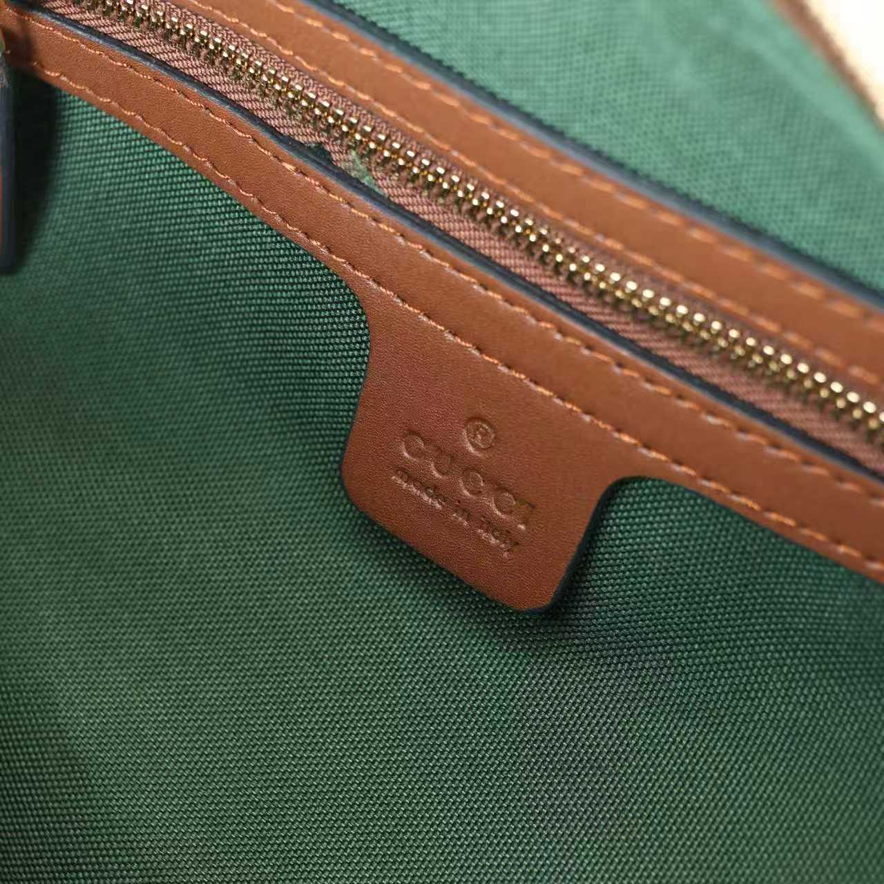 素材:GGキャンバス(アーモンド/ブラウン) / 牛革(レザー滚辺・提手・肩带) / ゴールドトーン金属金具 / リネン×コットン混紡裏地(グリーン)