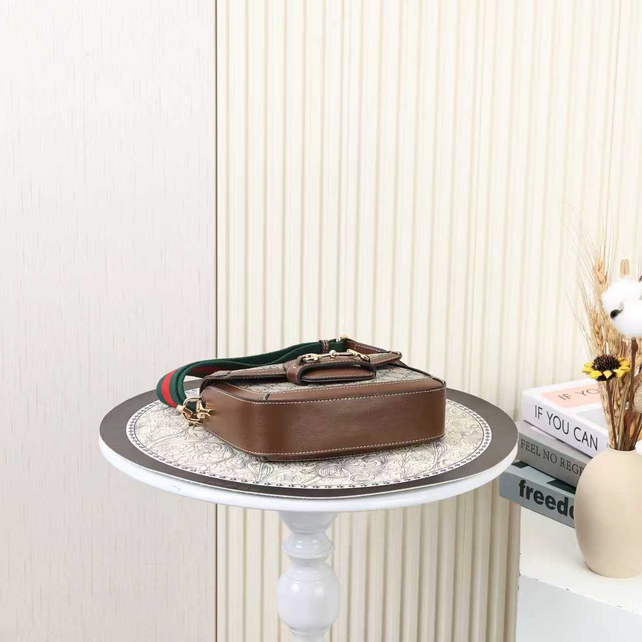 ・上質レザーの艶:本体に使用したグッチ伝統のスムースレザーは、手触りの良い「しっとりとした柔らかさ」と「光沢感」を両立。染色工程で何度も調整された「深みのあるブラウン/ブラック」(全2色展開)が、コーデに「上品なアクセント」を加えます。使い込むほどに「経年変化の楽しみ」も魅力です。