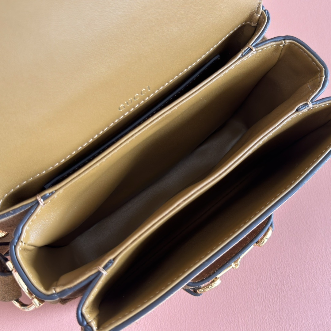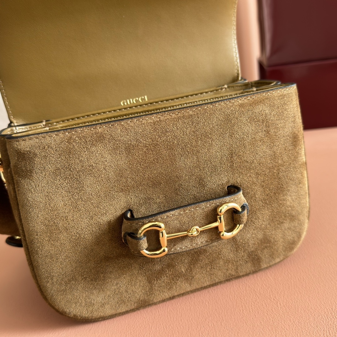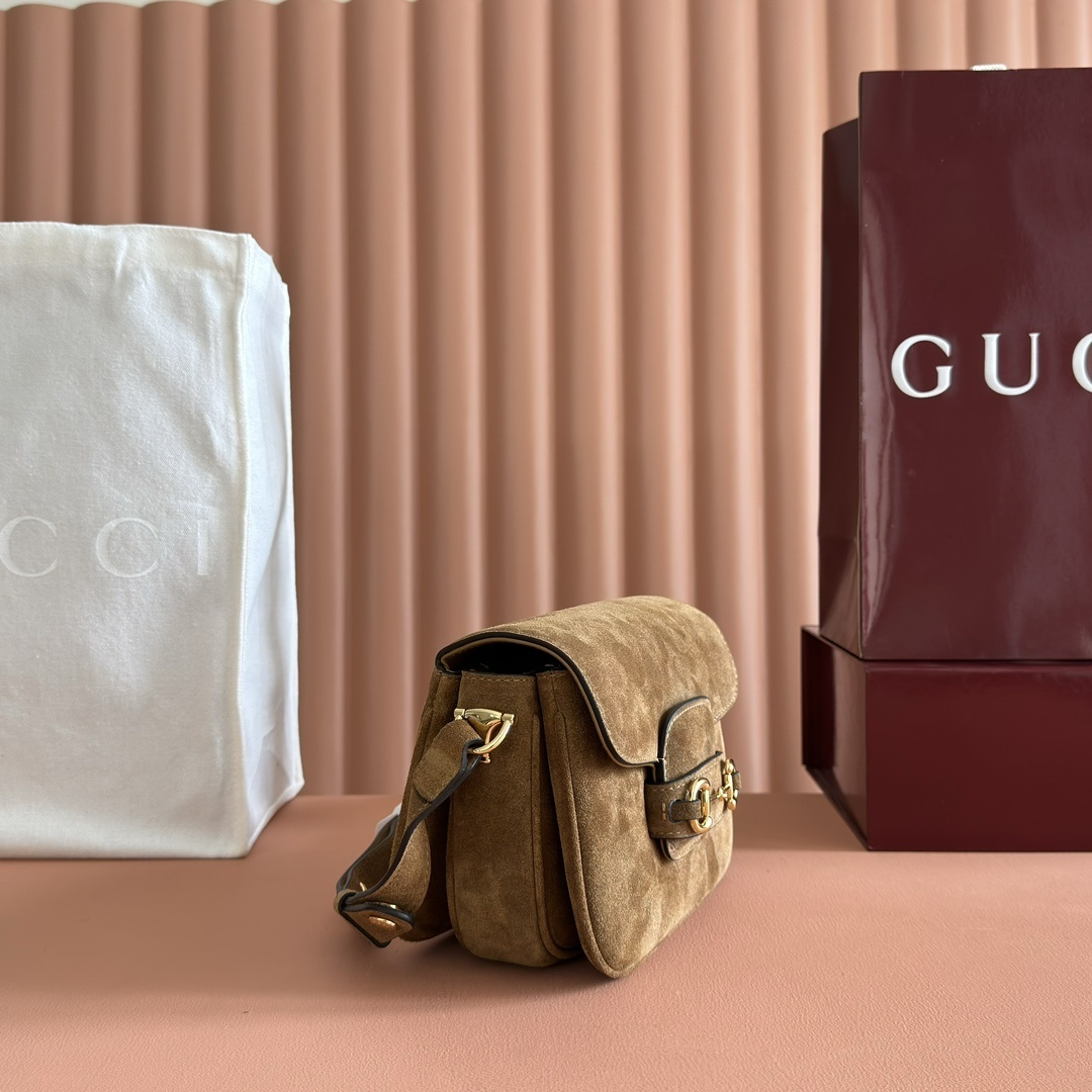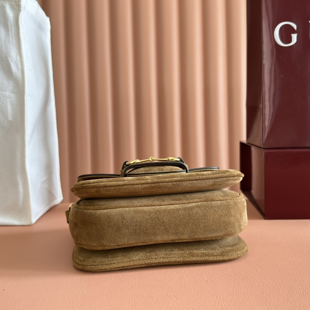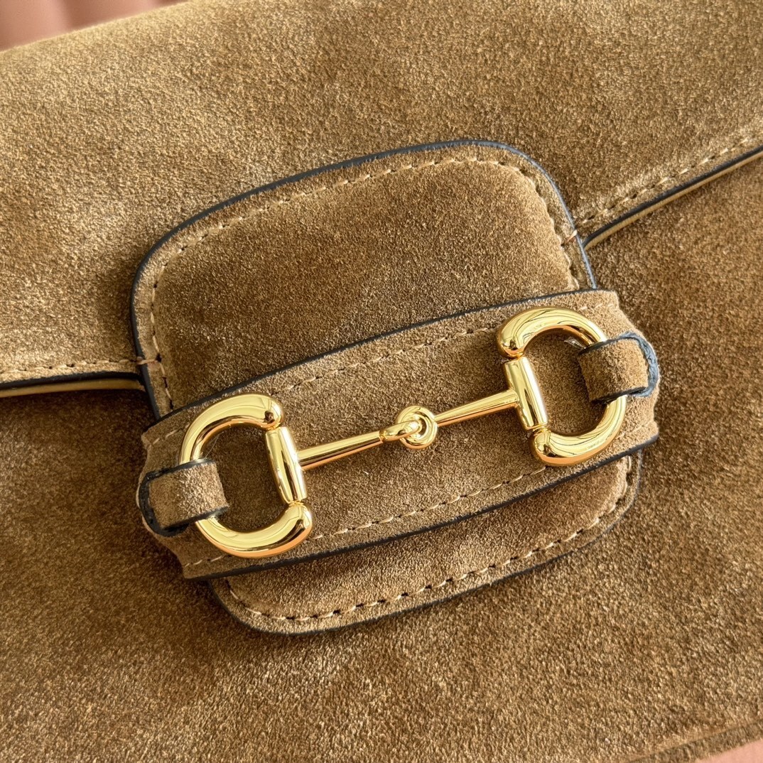 グッチ 2025秋冬 ショルダーバッグ|Horsebit 1955シリーズ|馬術スタイル×ブラウンスエード×金調アクセサリー|三段階隔層×調節可能肩带で叶える秋冬実用美