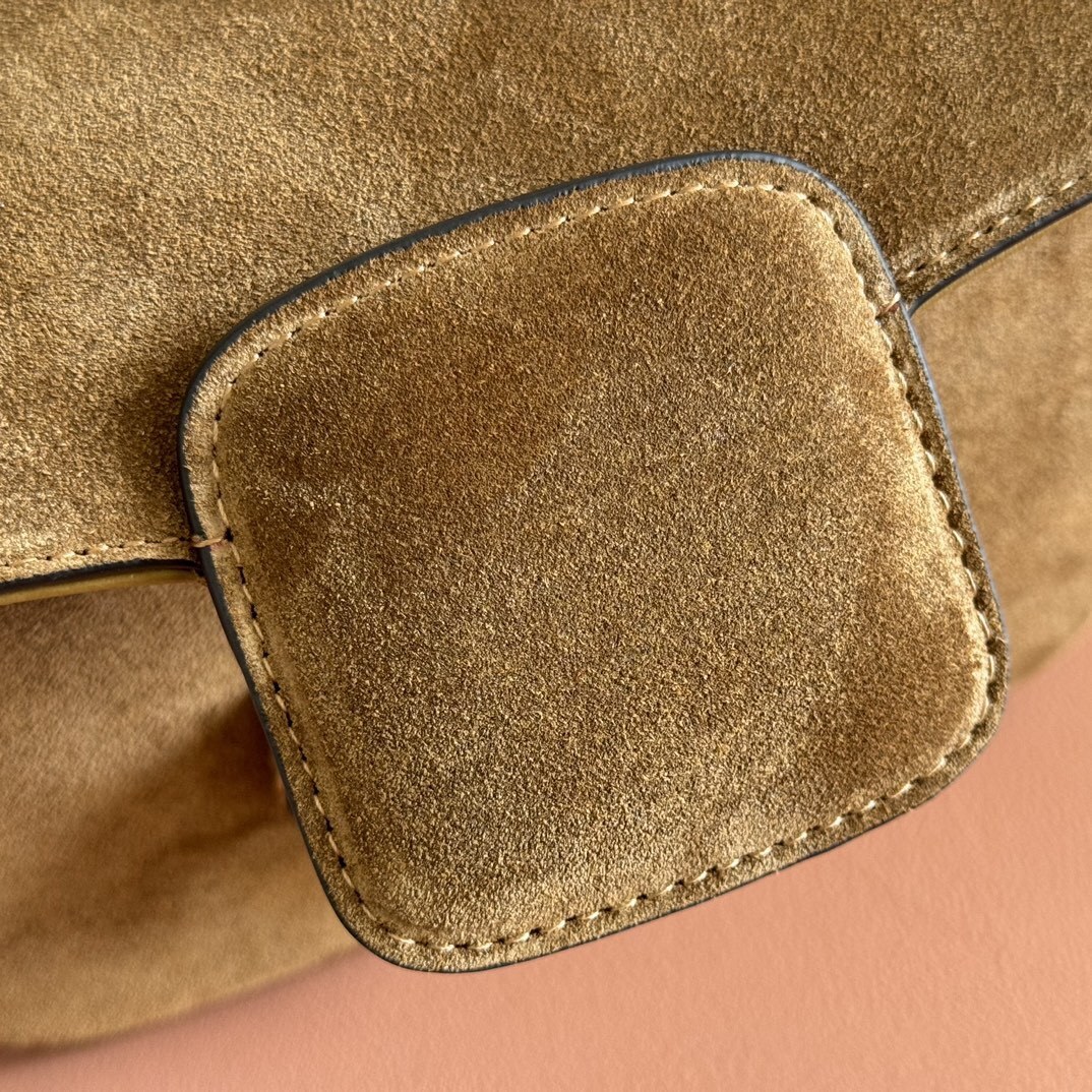 ・金調アクセサリーの輝き:ハースビット(馬銜扣)を中心に、双環、長条装飾、留め具に至るまで浅金色调金属を採用。磨き上げられた光沢が、スエードの控えめな質感に「華やぎ」をプラス。特に双環の立体彫刻は、馬術用の手綱をイメージし、「力強さと繊細さの共存」を象徴します。