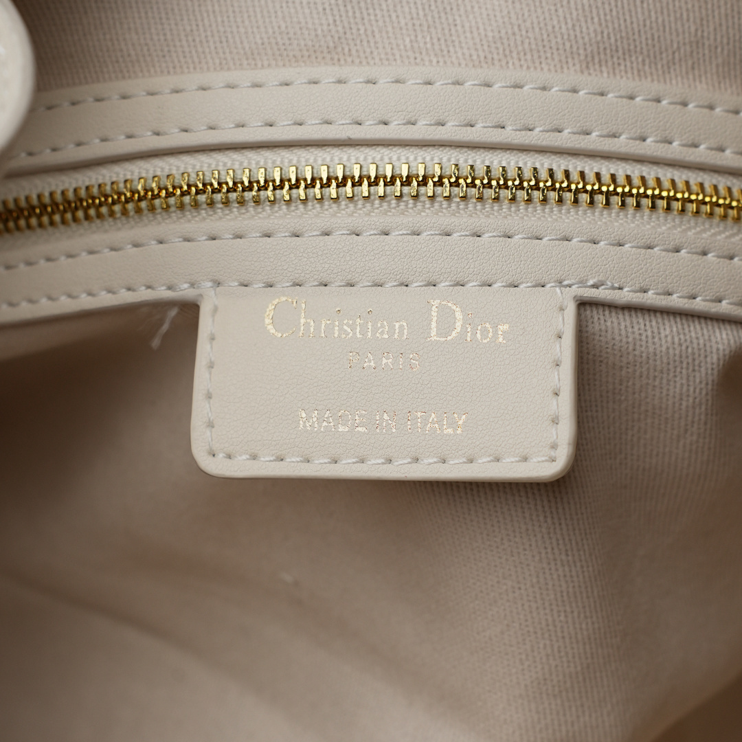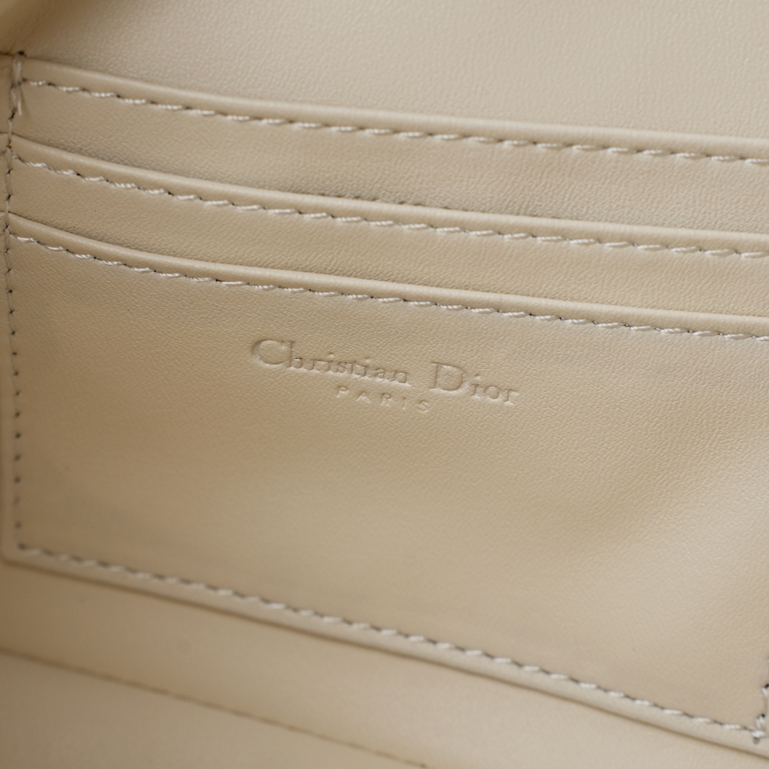 ・CDロゴ&スター刻印円形チャーム:正面の引き手部分に配された円形チャームは、中央にDiorのクラシックスターを配し、周囲に「Christian Dior Paris」刻印を施した職人技の逸品。ゴールドトーンメタルの磨き上げられた光沢が「遠くからでもディオールとわかる」存在感を放ちます。