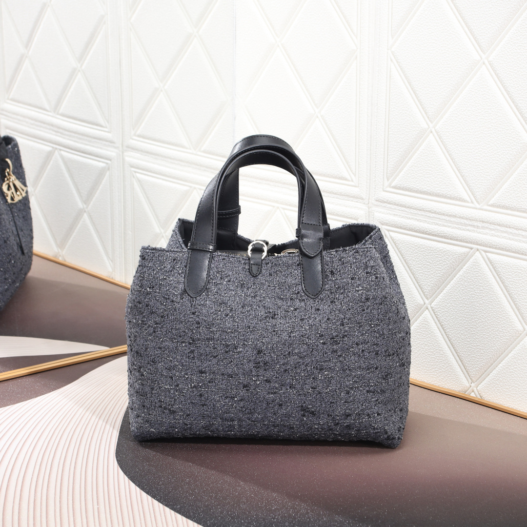 ディオール(Dior)の象徴的シリーズ「Dior Toujours」から登場したこのハンドバッグは、「日常の軽やかさと機能美の融合」を体現する傑作です。大号28.5cm(幅)×19cm(高)×21cm(奥行)の堂々たるサイズに、グレーツイード(灰色粗花呢)の温かみとシルバーメタル光沢糸の藤格紋刺繍の繊細さを融合。CDロック式D字ノブ留め具が「クラシックな品格」を主張し、双開閉デザインと可調節トップハンドルが「自分らしい使い心地」を追求。「一見で心惹かれる独特の個性」で今季の「必携カジュアルバッグ」に君臨します。