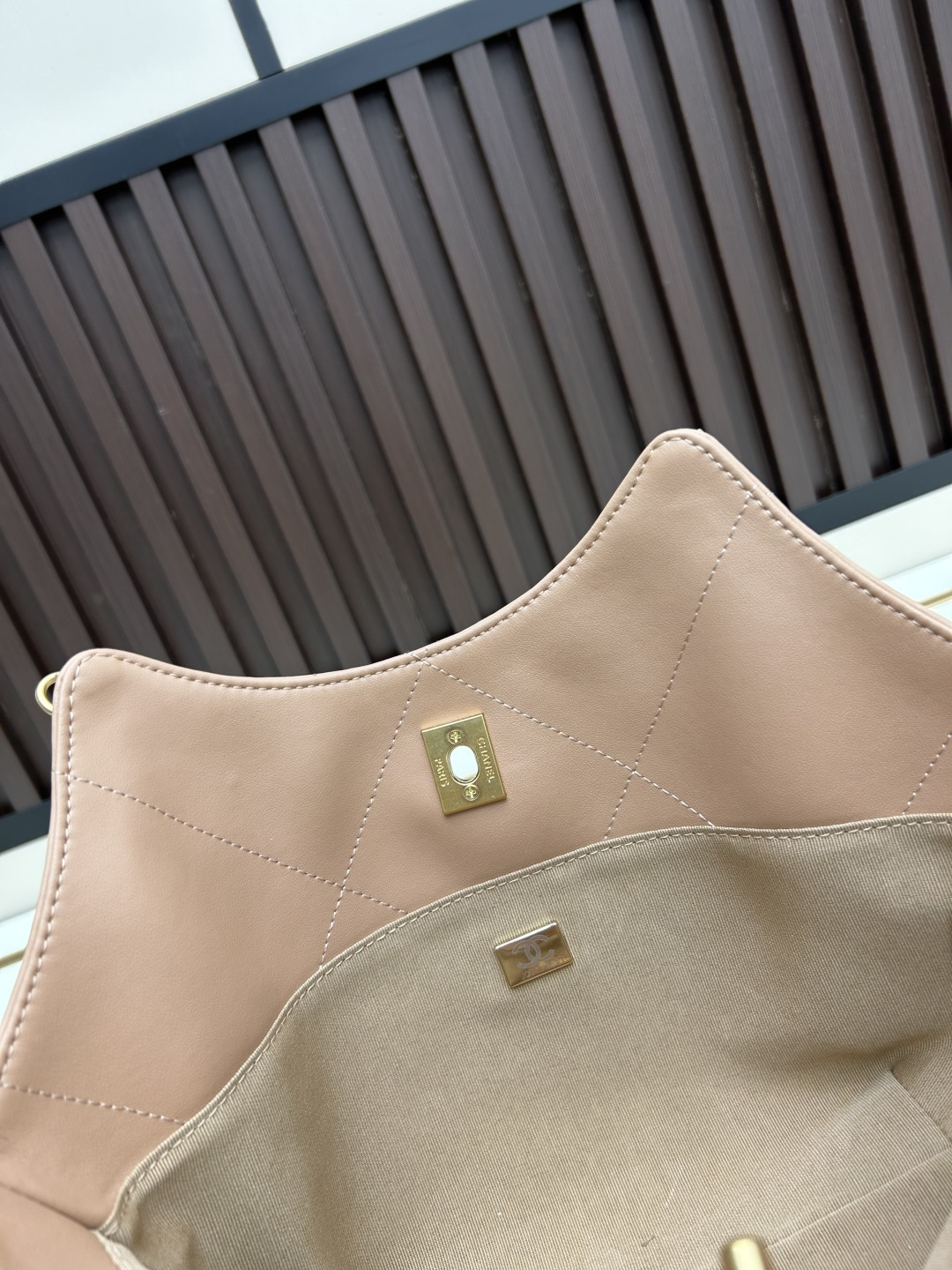 ・レトロメタル金具の象徴性:チェーンストラップ、留め具、角飾りに至るまでヴィンテージ調メタル金具を採用。磨き上げられた「古びた輝き」が「1960年代のヒッピーカルチャー」を想起させ、「シャネルらしいクラシックな遊び心」を演出。金具の「わずかな歪み」も職人技の「一点ものの証」です。
