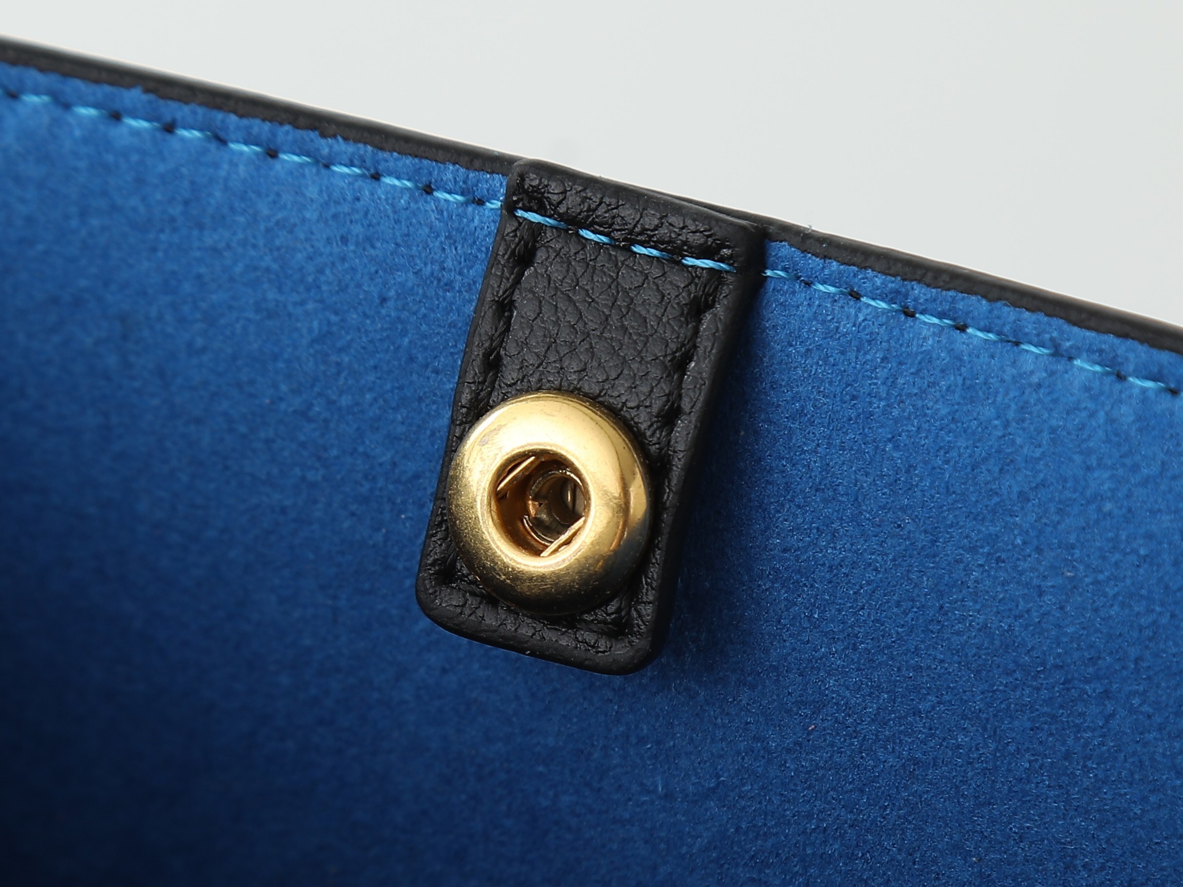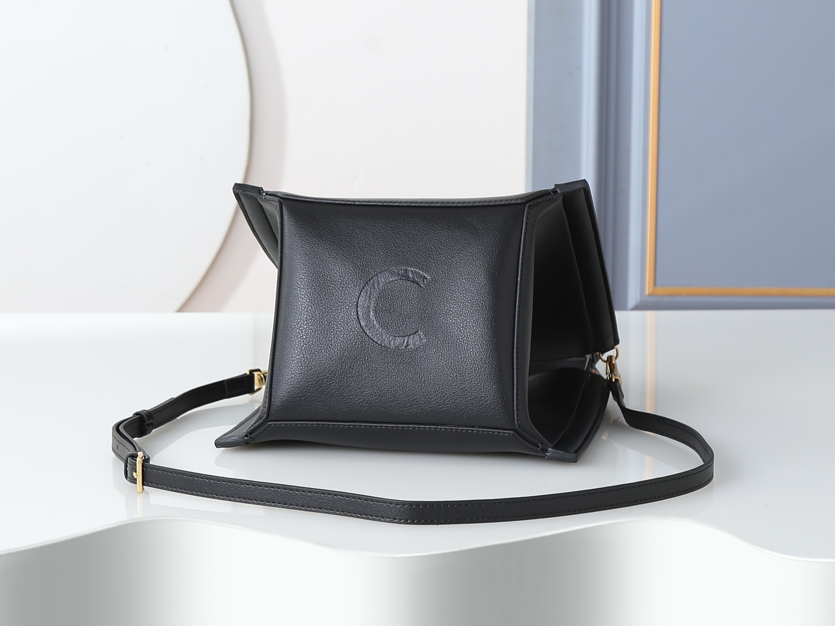 ・ゴールドトーン仕上げの象徴性:フロントのシングルフラップに配されたゴールドトーンメタルプレート(Celineロゴ刻印)と、金具全般(留め具、ストラップリング)が「遠くからでも視認できるアクセント」に。磨き上げられた光沢が「都市の夜景」を想起させ、「片手での滑らかな開閉」を可能に。