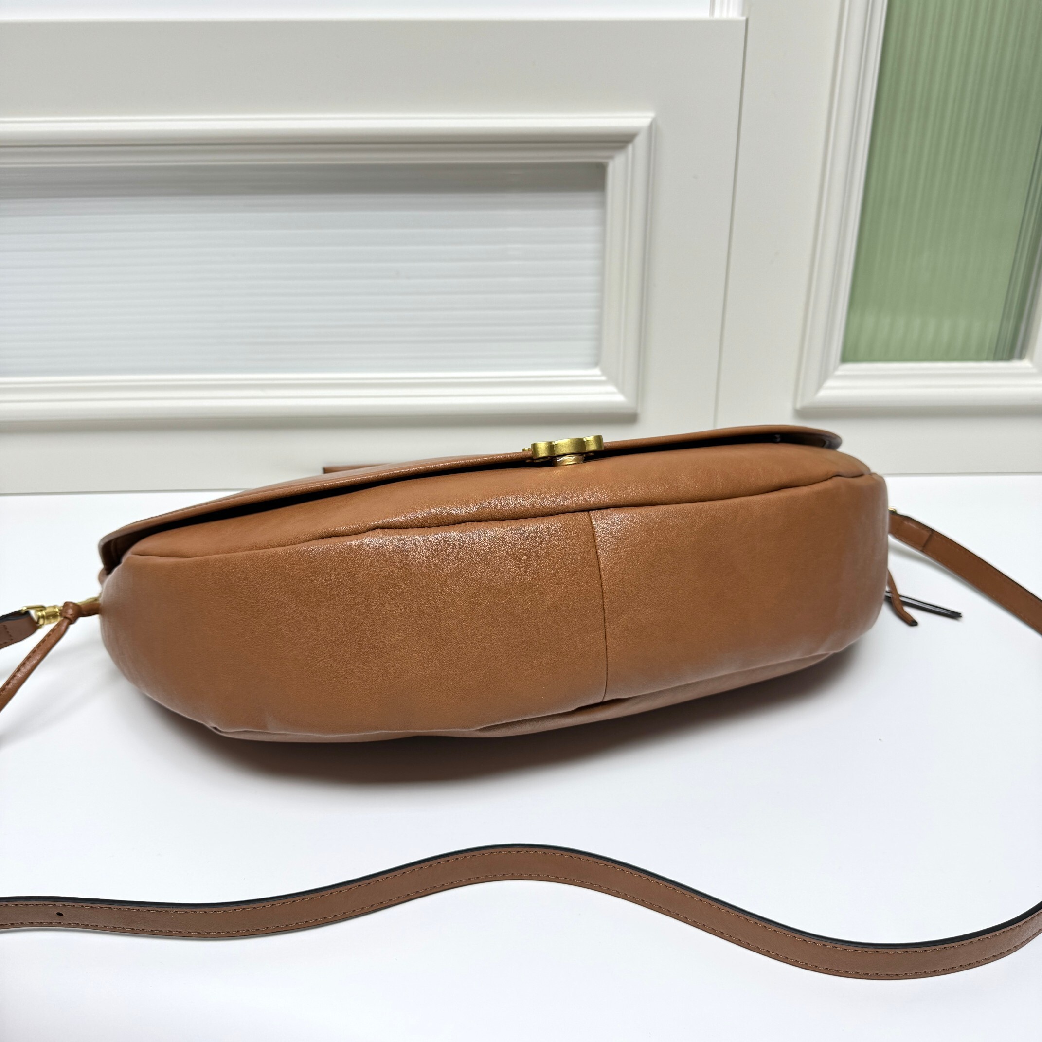 デザイン:半月バッグ / ソフトトリオンフ羊皮革(本体) / 微縮Triomphe磁気留め具(ゴールドトーン) / 2包型(Besace翻盖型/Half Moon半月型) / 2WAY背法(肩背・クロスボディ) / 調節可能ショルダーストラップ(羊皮革製) / 内側ラム革裏地(オープンポケット×2)