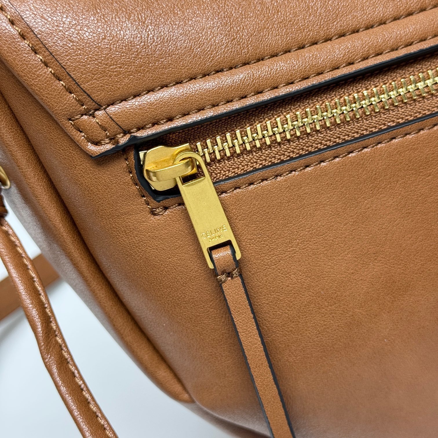 ・ソフトトリオンフ羊皮革の芸術:本体に使用したフランス産羊皮革は、セリーヌ工房が厳選した「しっとりとした肉厚感」が特徴。特殊な鞣し工程で「使い込むほどに深まる光沢」を再現し、表面の「微細な毛羽立ち」が「手に触れた瞬間の癒し」を演出。日常の擦れに強い高密度繊維構造で「長期使用でも型崩れしにくい耐久性」を実現。