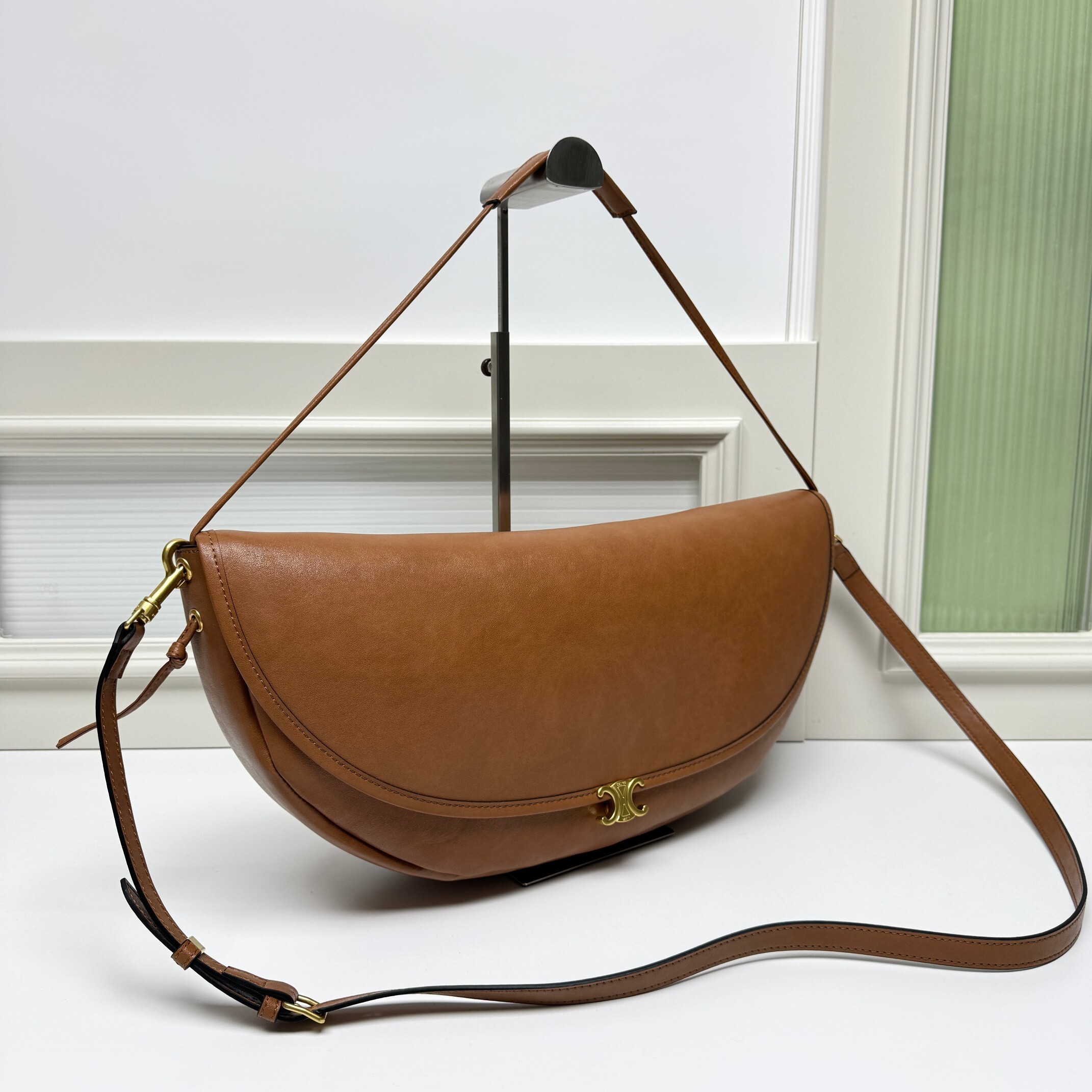 セリーヌ CE Halfmoon 半月バッグ|ソフトトリオンフ 羊皮革|微縮Triomphe磁気留め具|Besace/Half Moon 2包型|肩背/クロスボディ|46×19×10cm