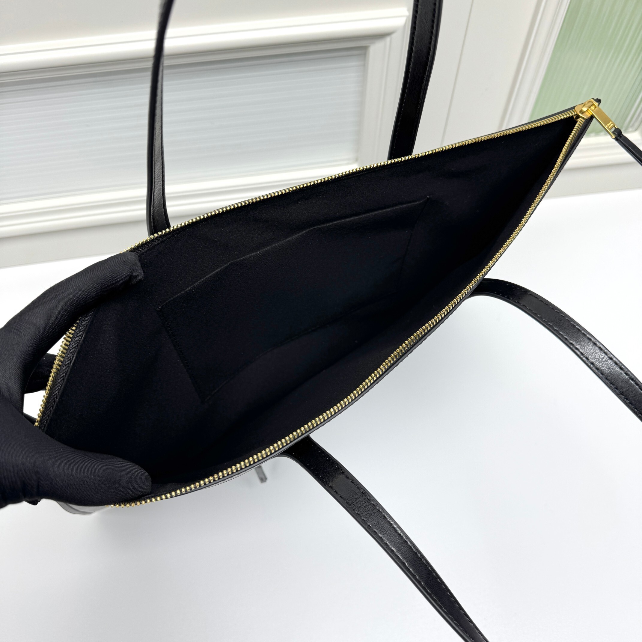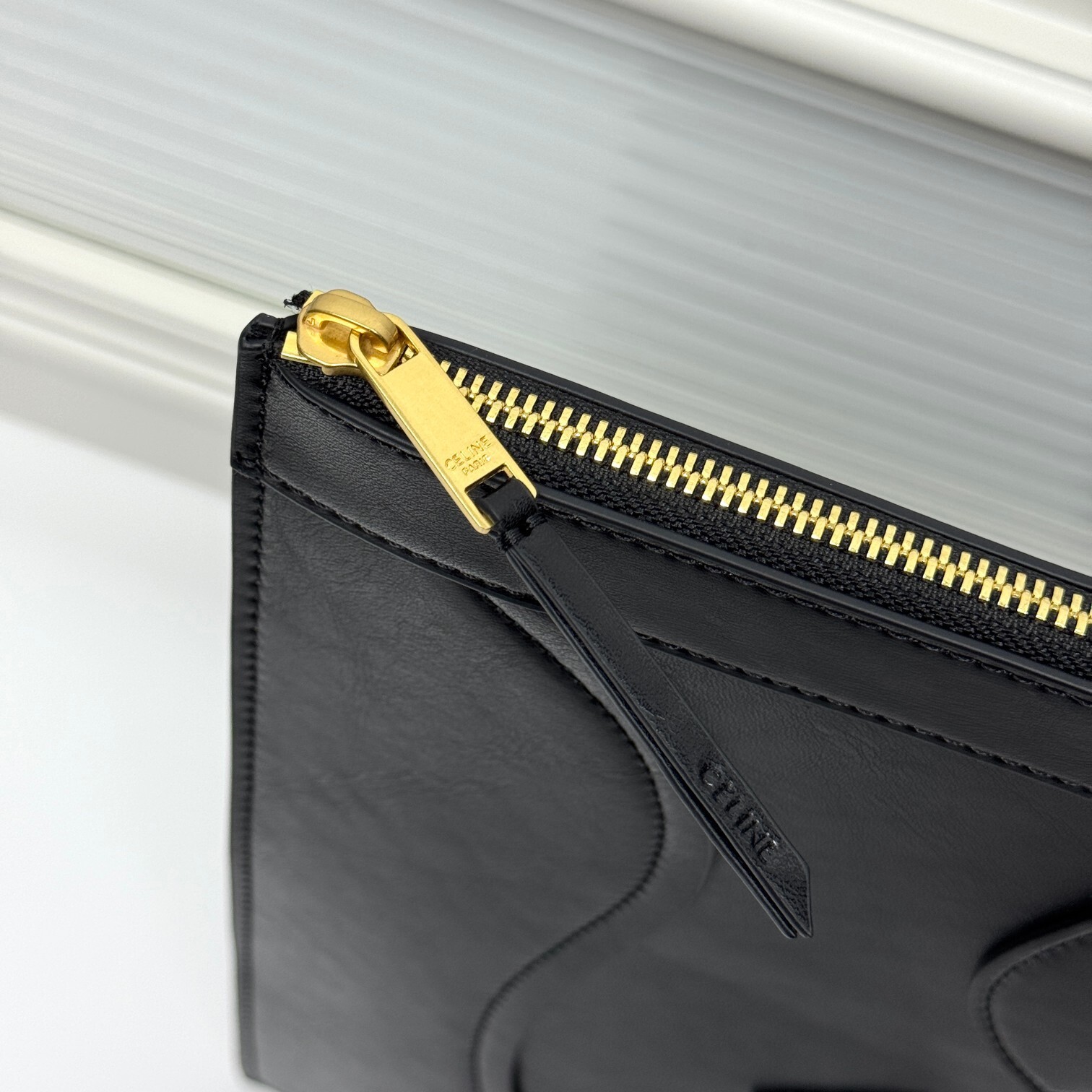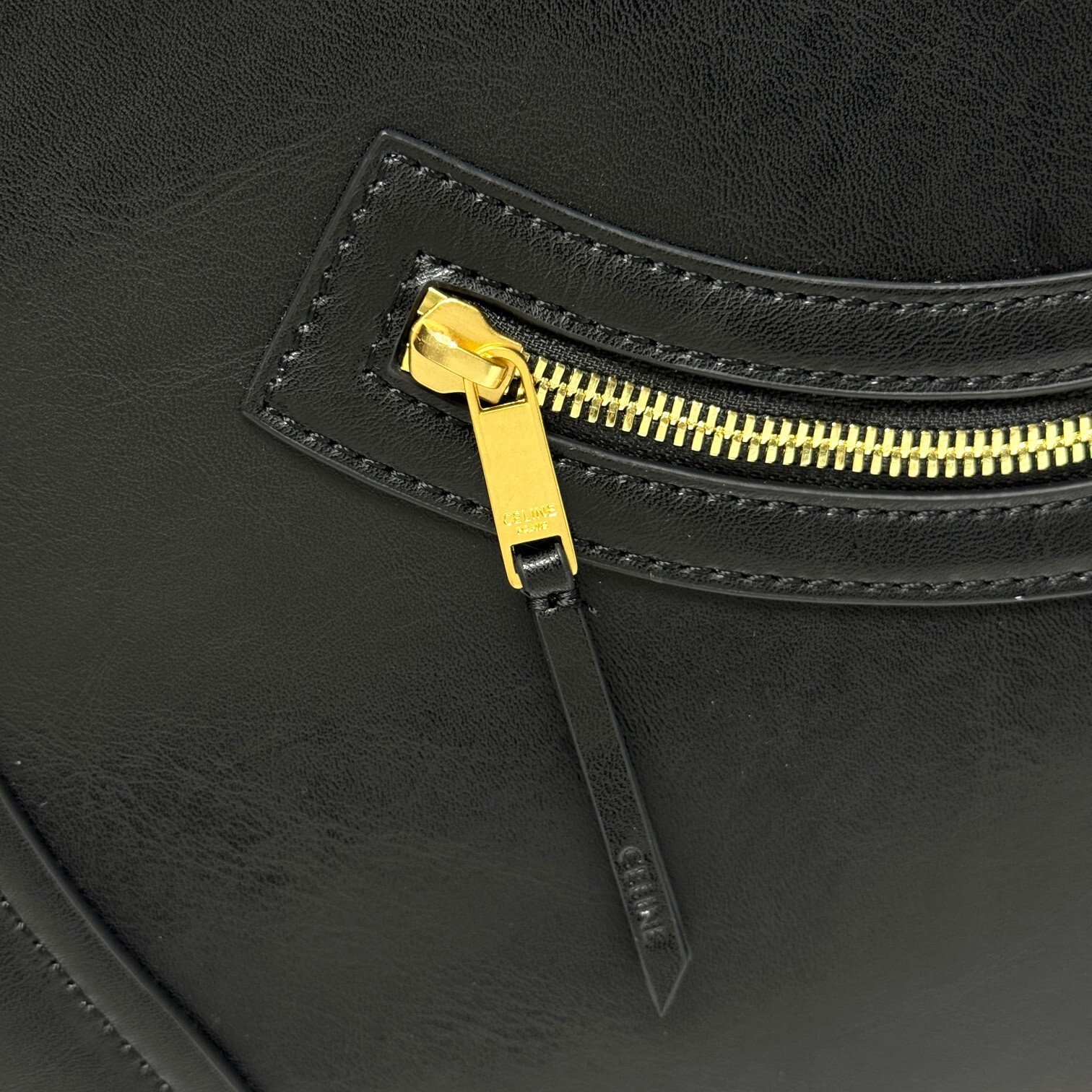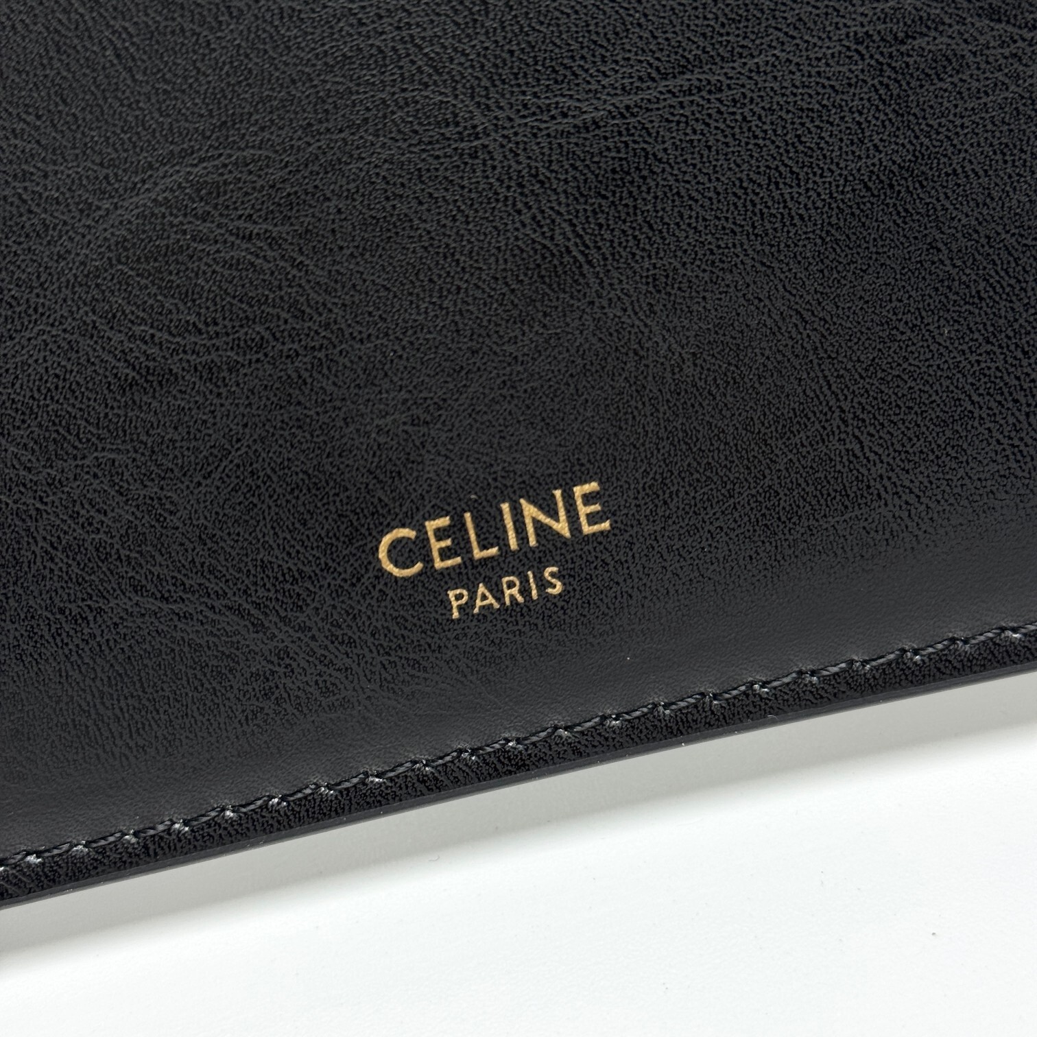 ③ 復刻It Bagの象徴性:背面にミニチュア「CELINE」ロゴ刺繍を配し、「10年前の熱狂」をほのかに想起させる。金具はゴールドトーンメタル(シンプルなプレート型)で「過剰な装飾を排したセリーヌらしさ」を体現。